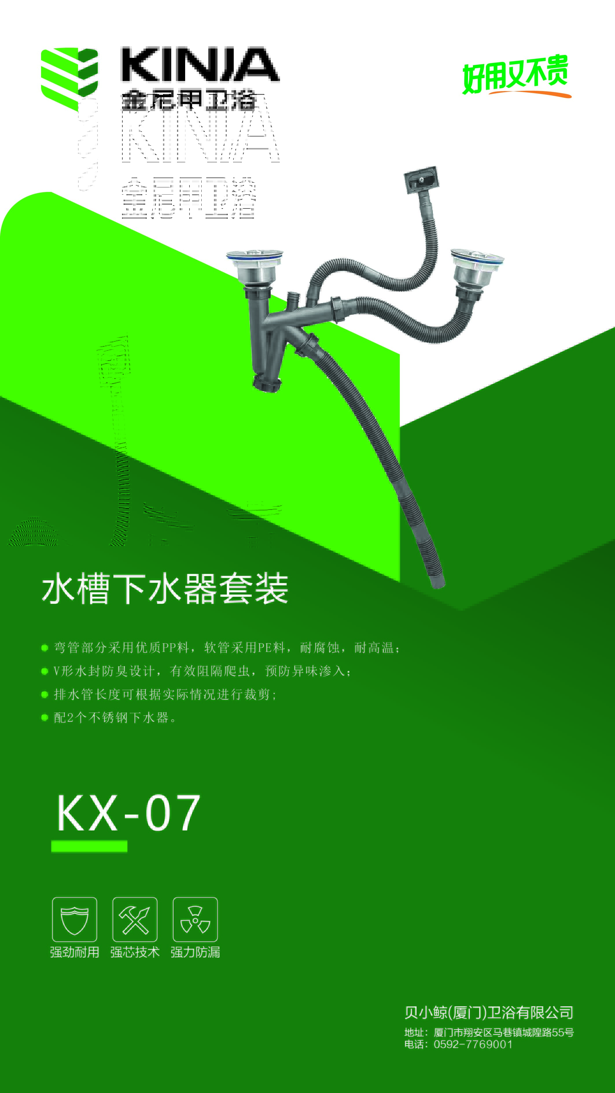 KX-07/双槽下水器套装/2水槽下水器+40管+溢水管/拉丝