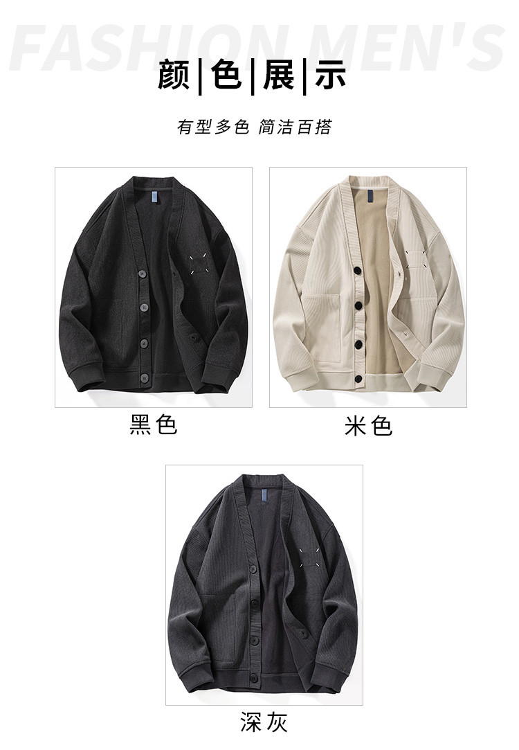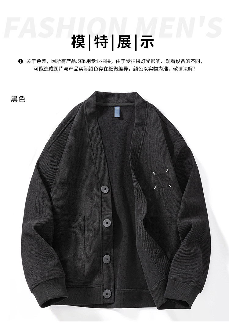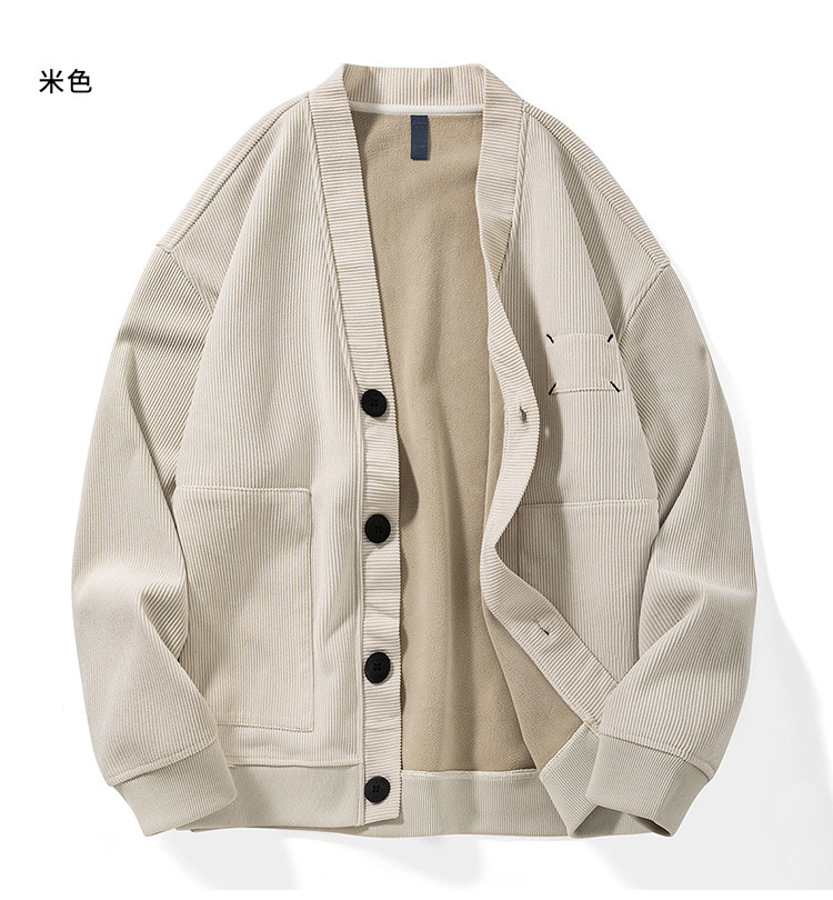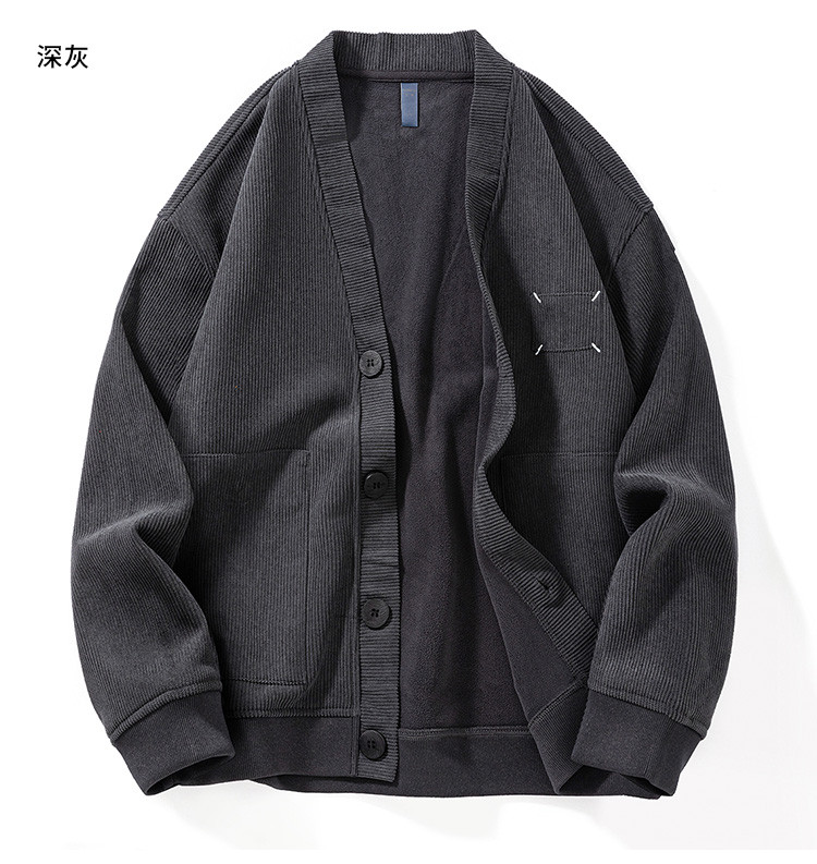 【灯芯绒】罗蒙男士大口袋加绒外套男秋冬保暖针织开衫男士外套加绒卫衣男