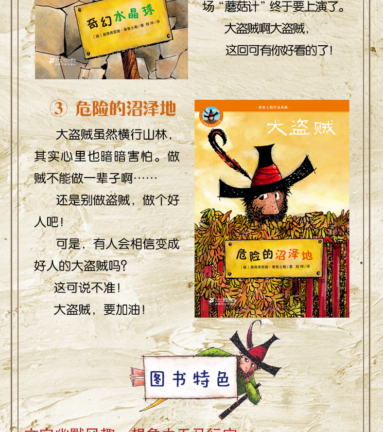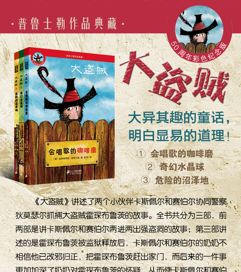 大盗贼系列全套3册 普鲁士勒作品典藏正版畅销儿童文学会唱歌的咖啡磨 奇幻水晶球 危险的沼泽地 6-8-9-10-12小学生课外读物图书籍