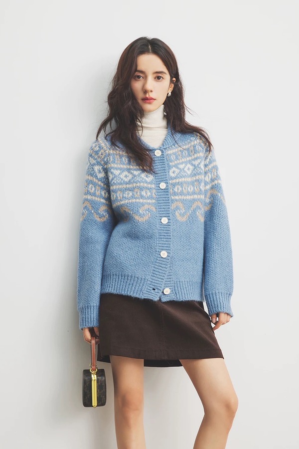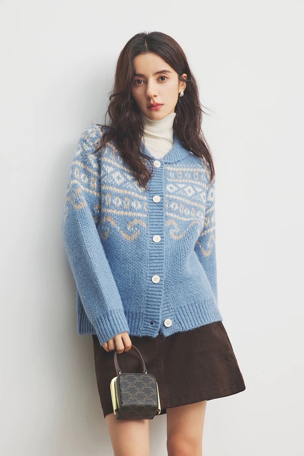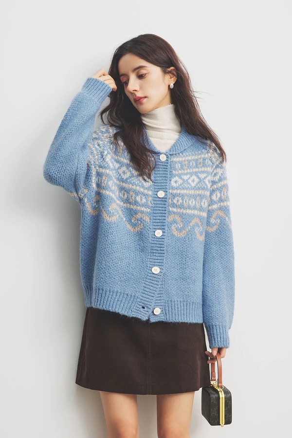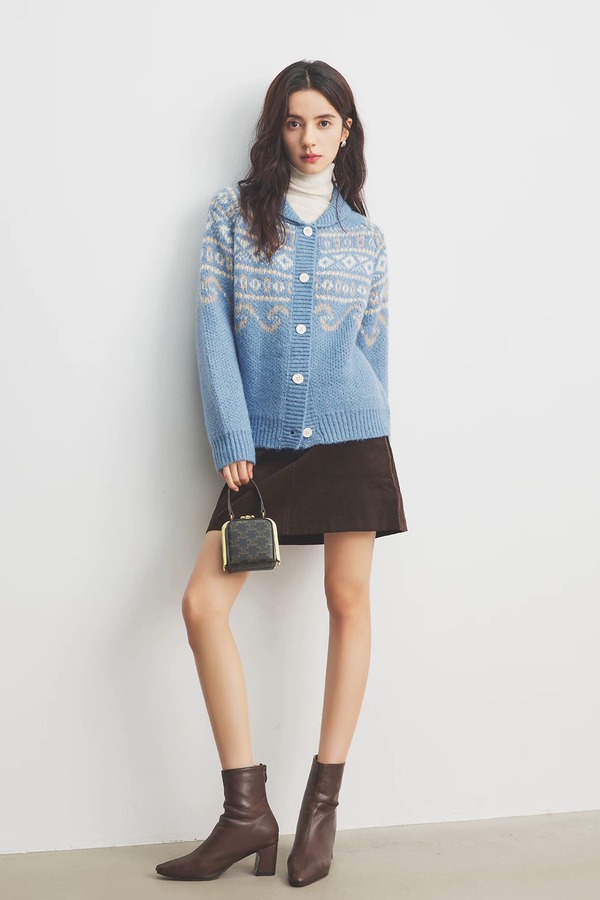 HAYES 费尔岛复古提花小翻领开衫外套 21965