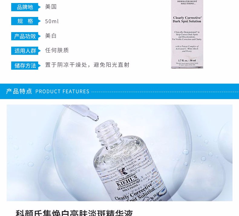KIEHLS 科颜氏 集焕白淡斑精华液 50ml/100ml 宋茜同款 美国