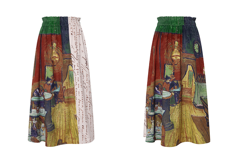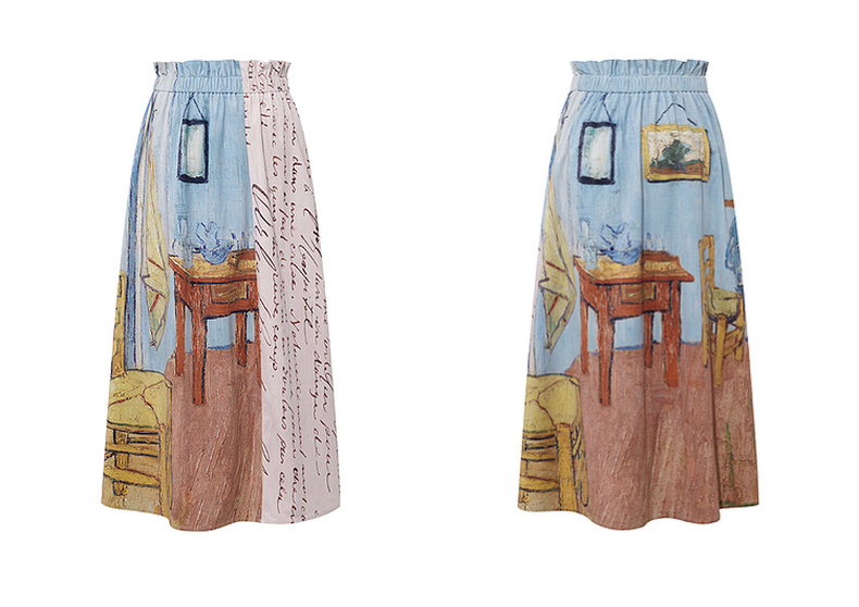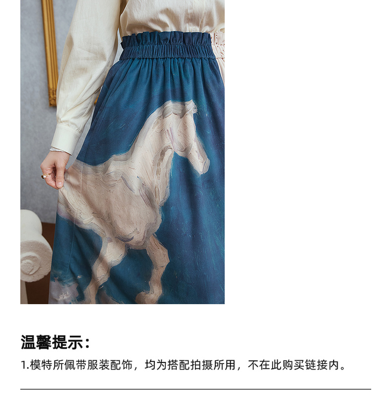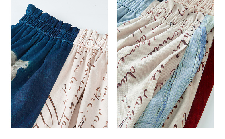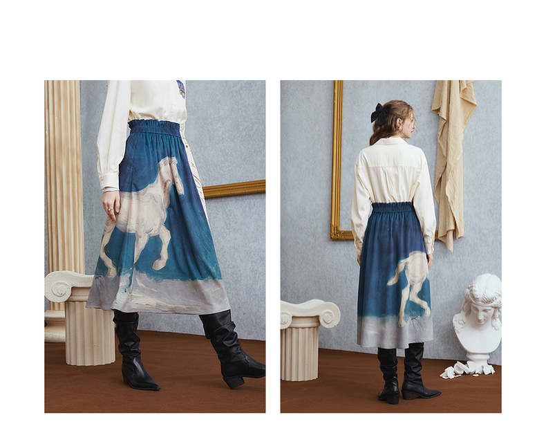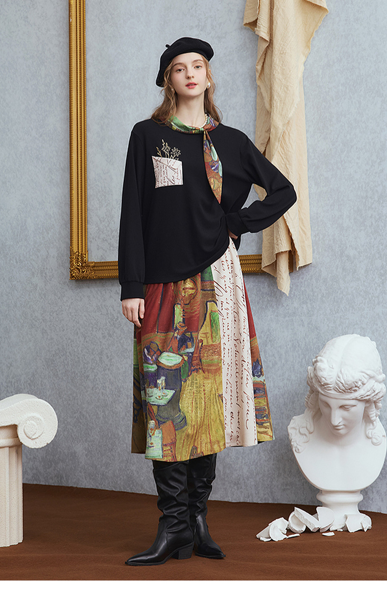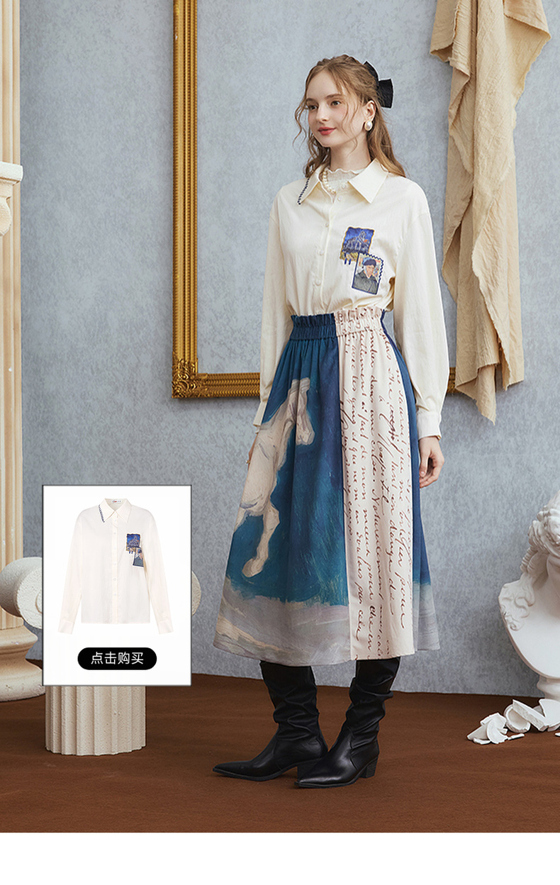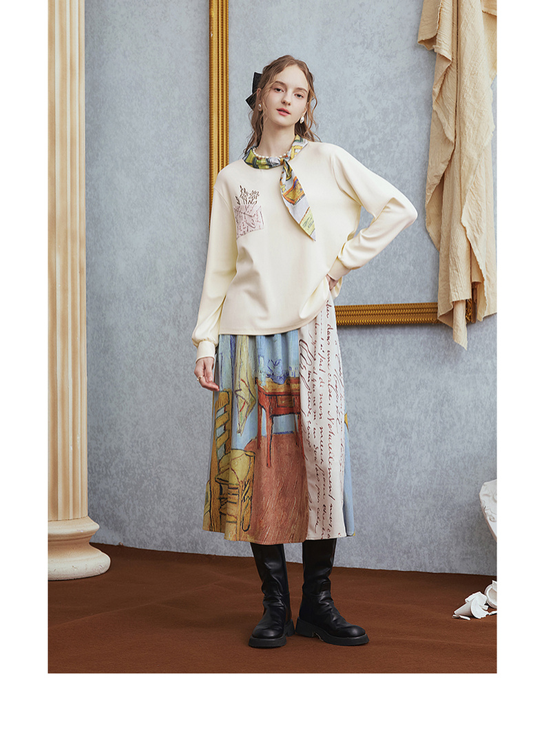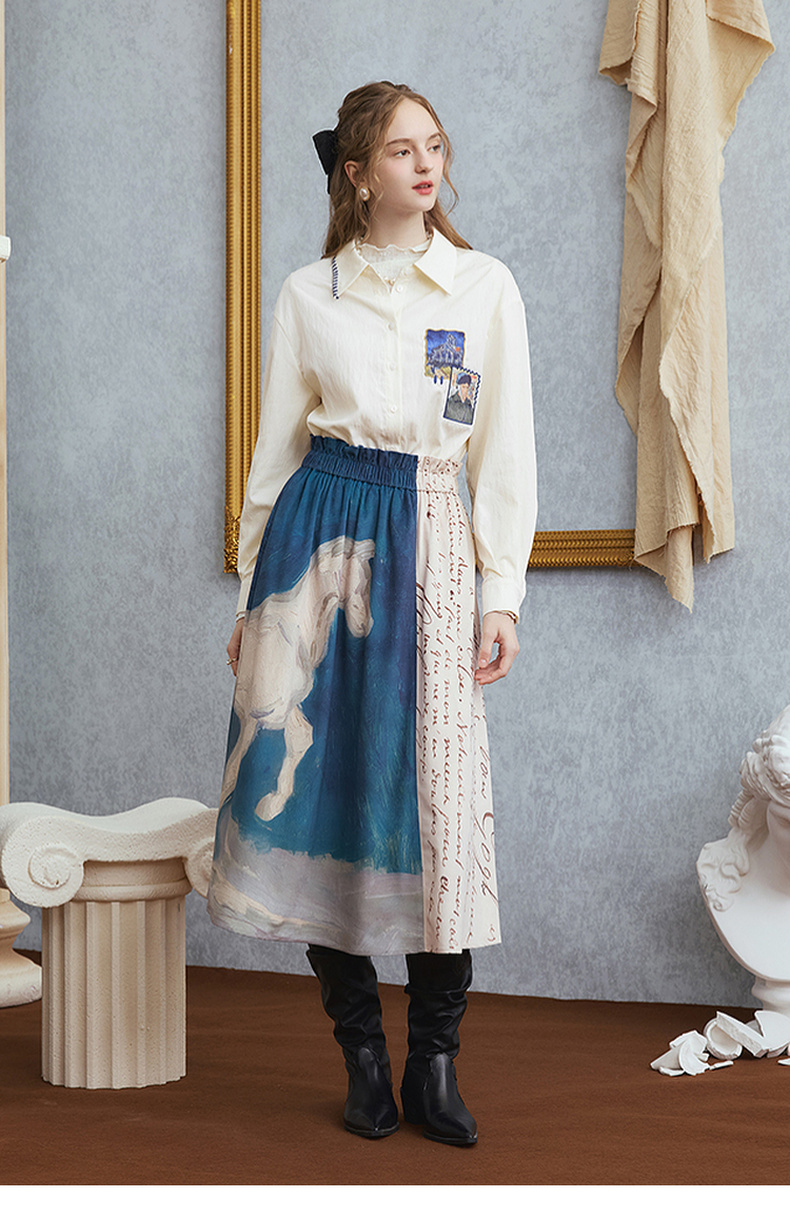 两三事梵高文艺 幻想彼岸 2025秋季新款法式印花木耳边拼接半身裙