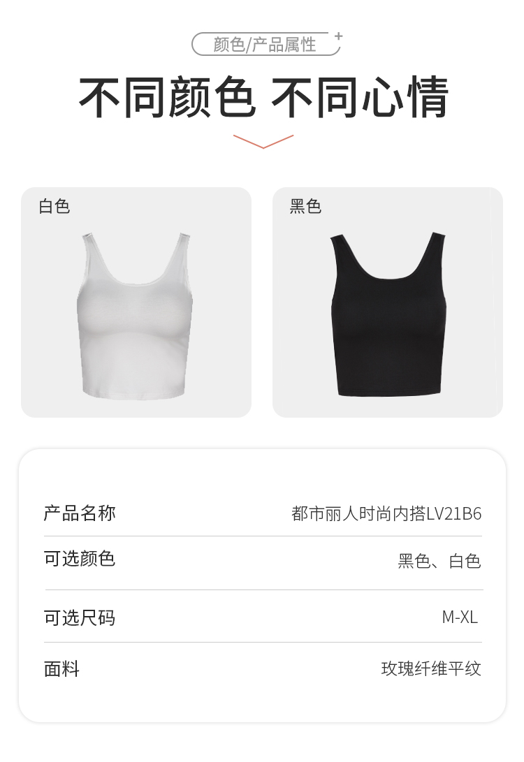 都市丽人基础简约面料短露卡玫瑰纤维平纹背心无排扣无钢圈LV21B6