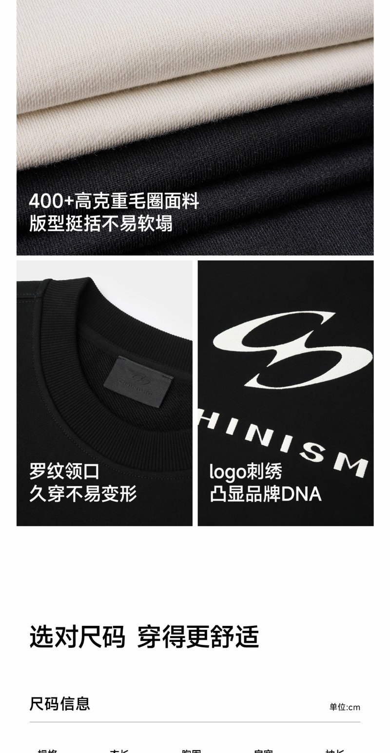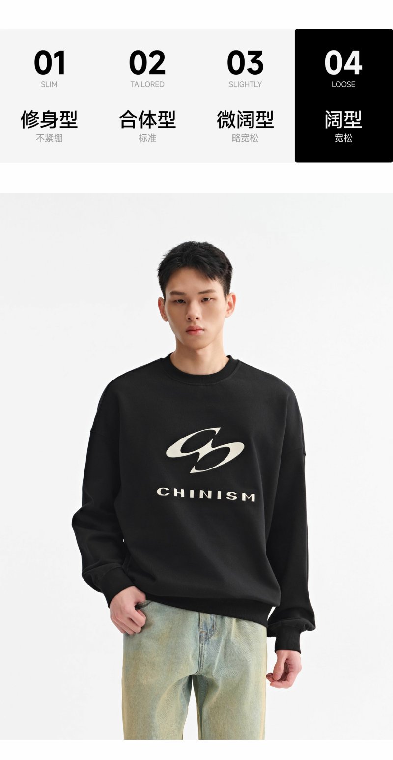 【商场同款】CHINISM赤尘 405G重磅毛圈绣花圆领卫衣男冬季新款