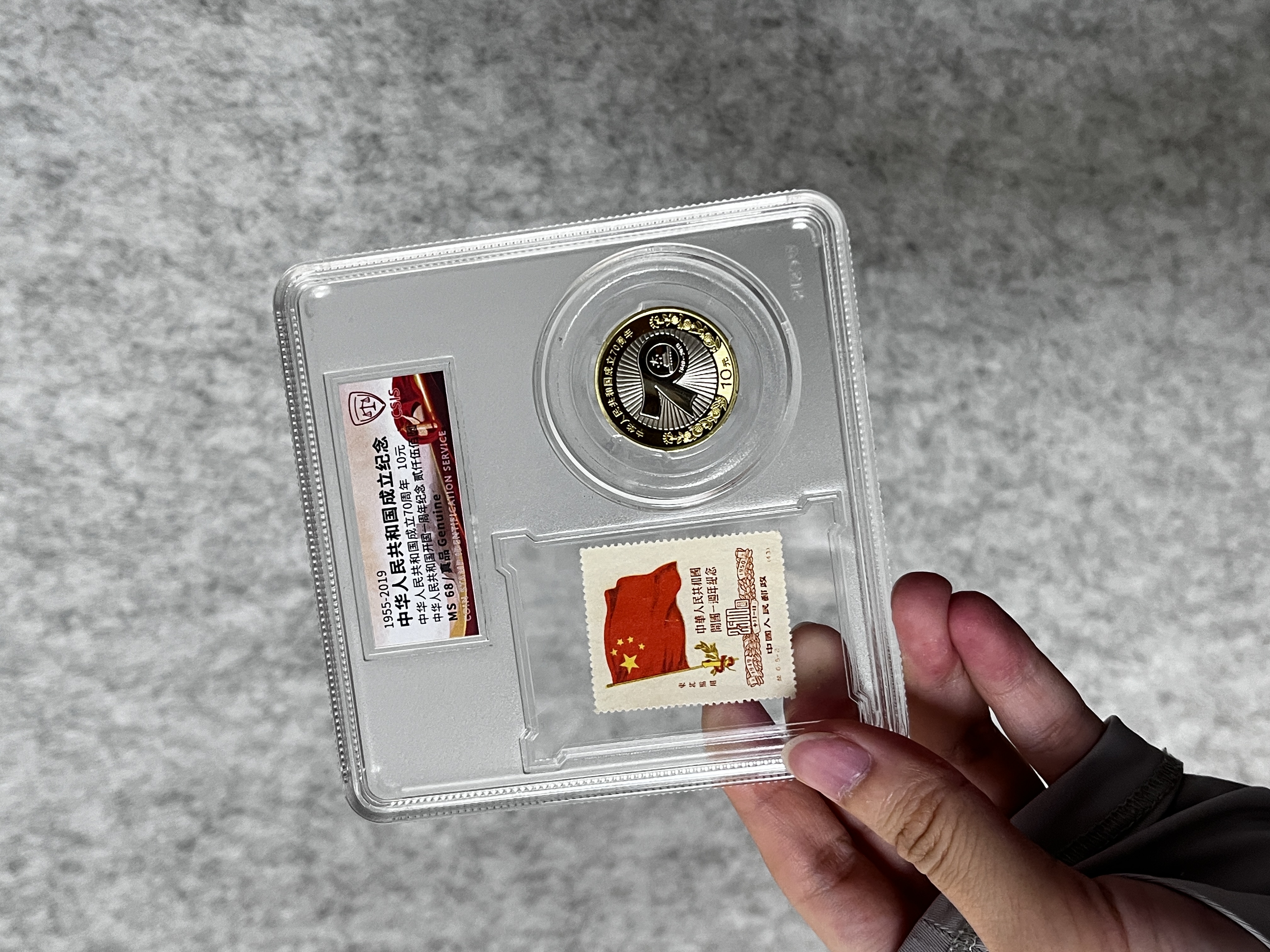 建国70周年纪念币+ 纪6 中华人民共和国开国一周年纪念(东北贴用)(再版)2500元面值 邮票)68/真品