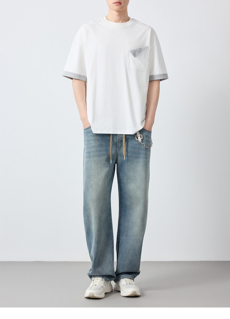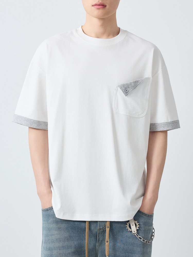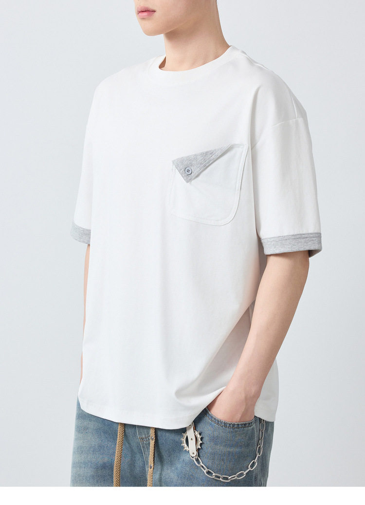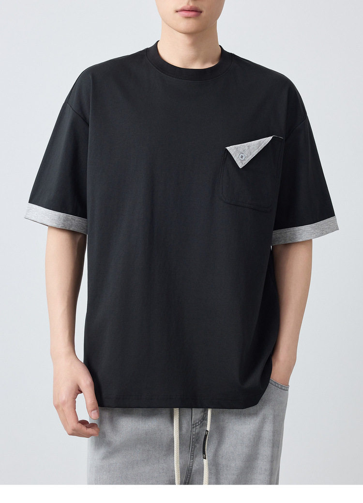 墨麦客男装城市运动撞色圆领t恤男2026夏新款宽松男士短袖75226.