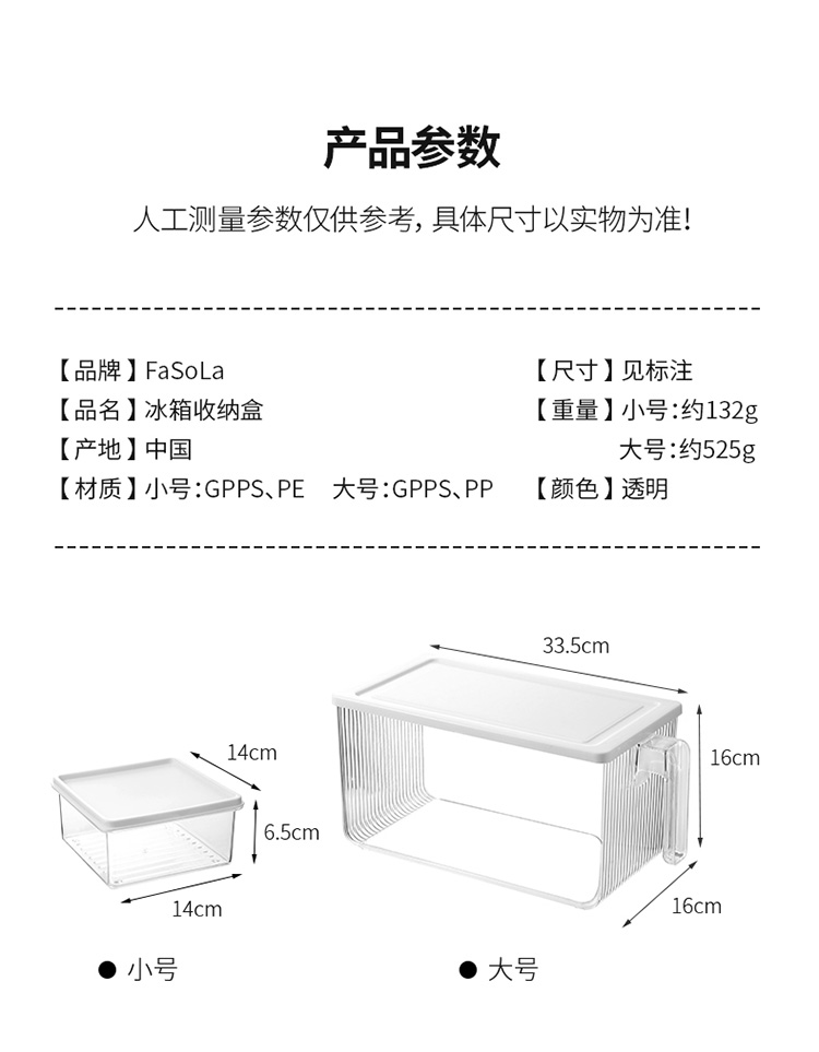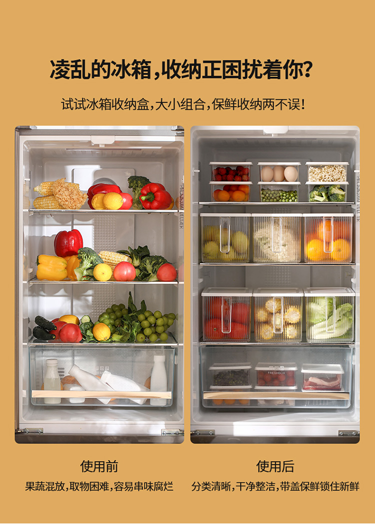 FaSoLa厨房冰箱收纳蔬菜整理神器食物保鲜盒透明专用储物盒