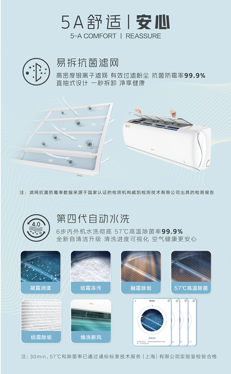 奥克斯(AUX)畅享风大1匹新一级变频 0风感 智能控制 高温除菌 壁挂式空调KFR-26GW/BpR3AQA700(B1)