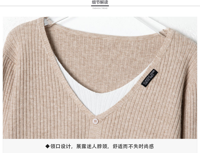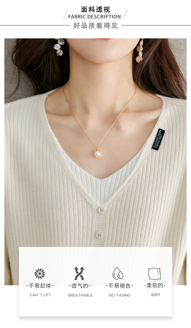 半身缘女装 秋季V领扣子装饰内搭针织打底衫毛衣VL001