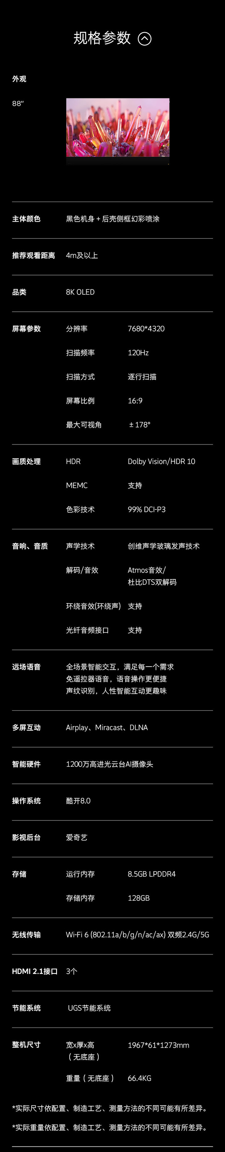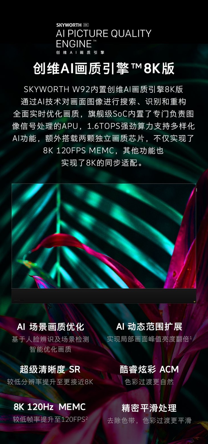 创维(Skyworth)88W92 88英寸8K 超OLED 屏幕发声 Ai智能声控语音超大电视机 128G+8G