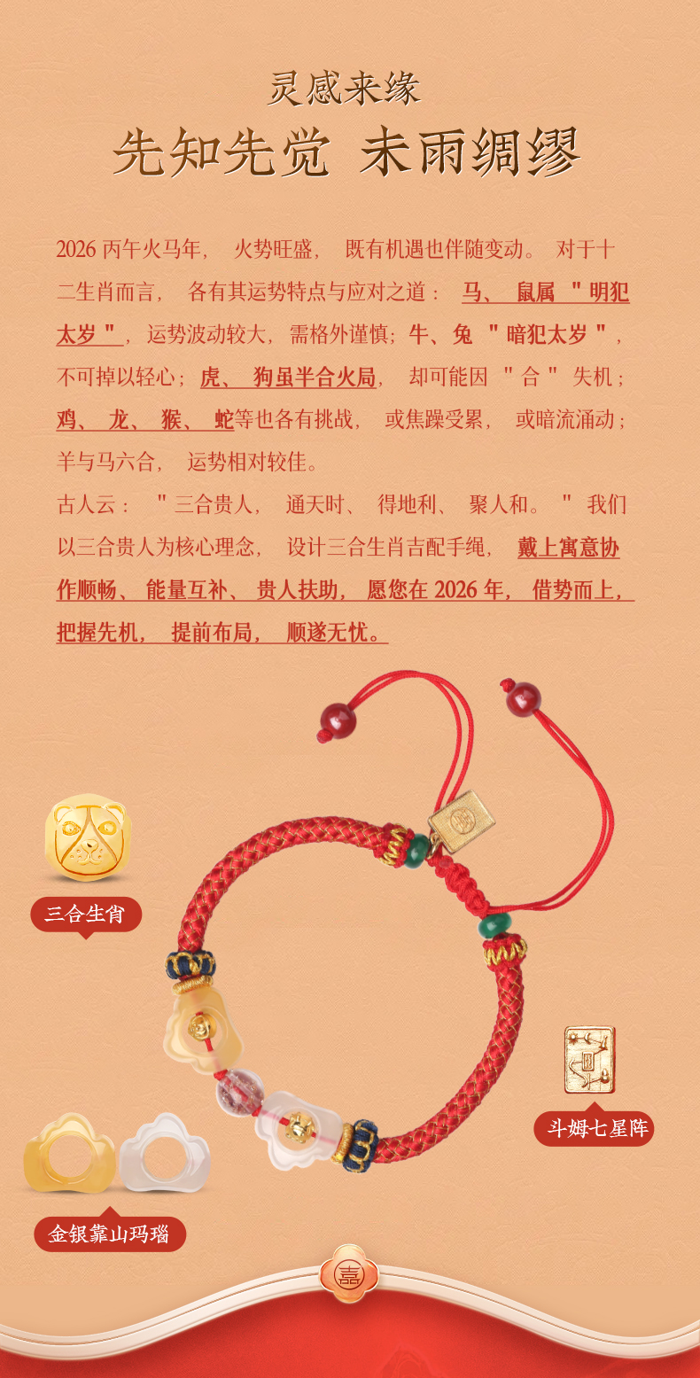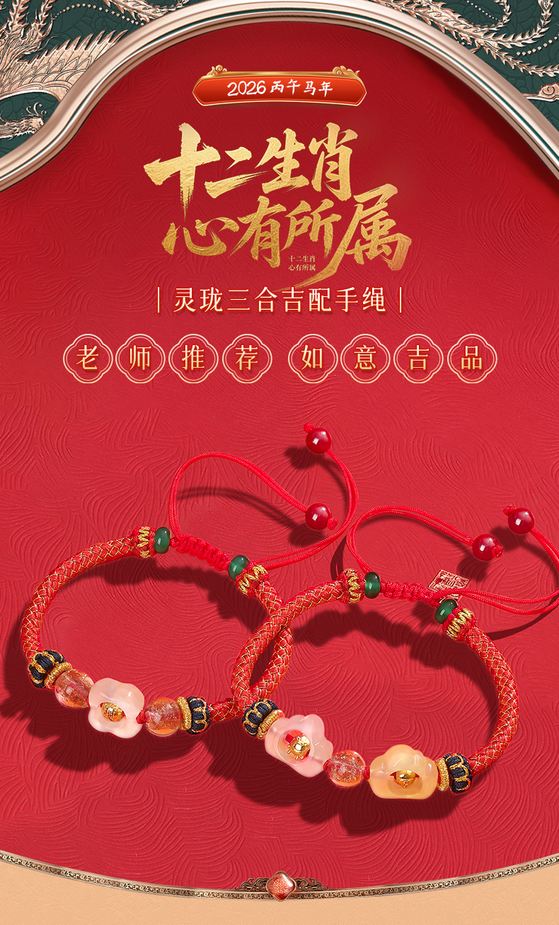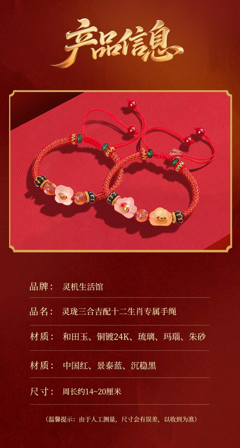 灵机生活馆2025年灵珑靠山三合生肖红绳属蛇猪虎猴男女手绳
