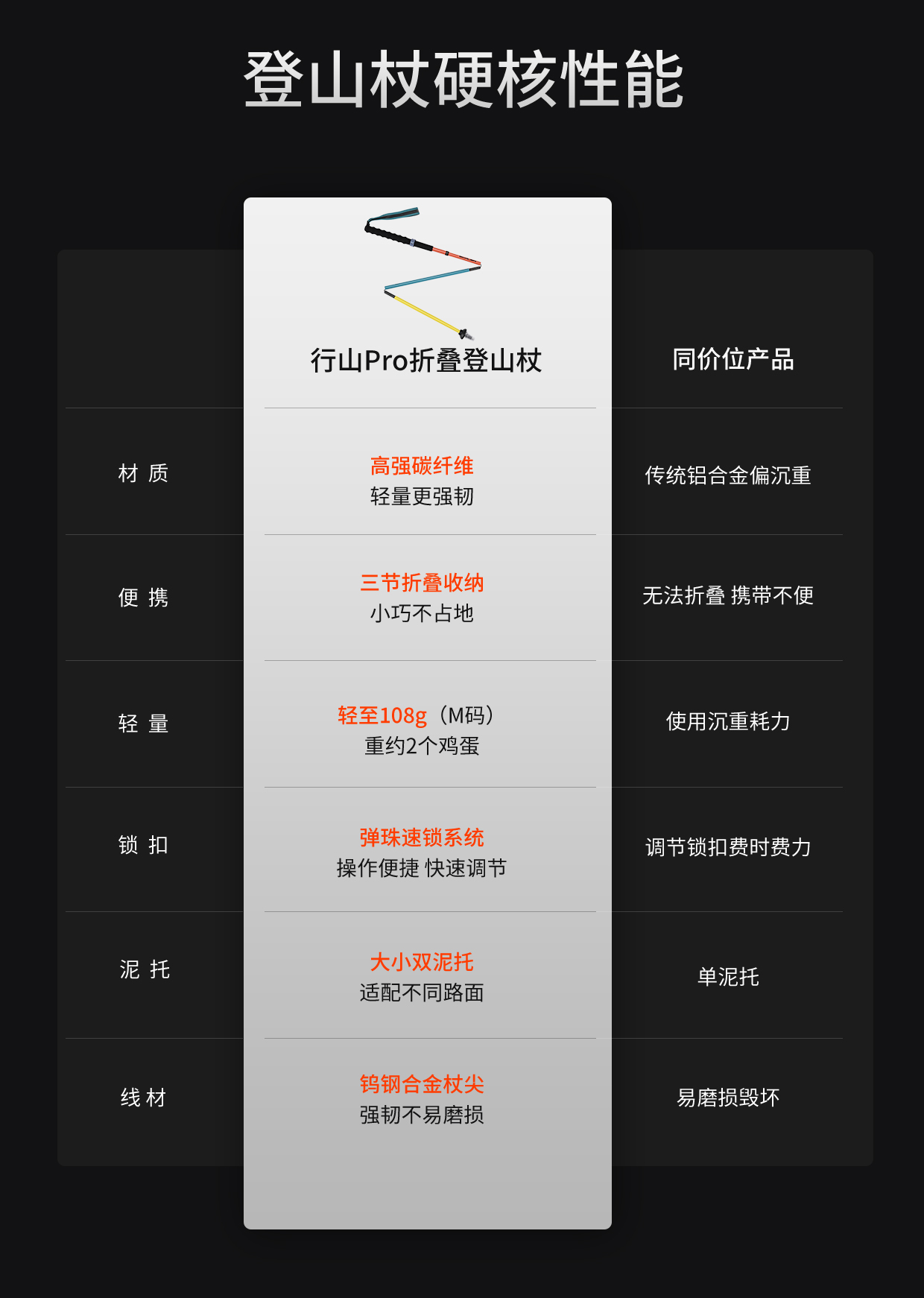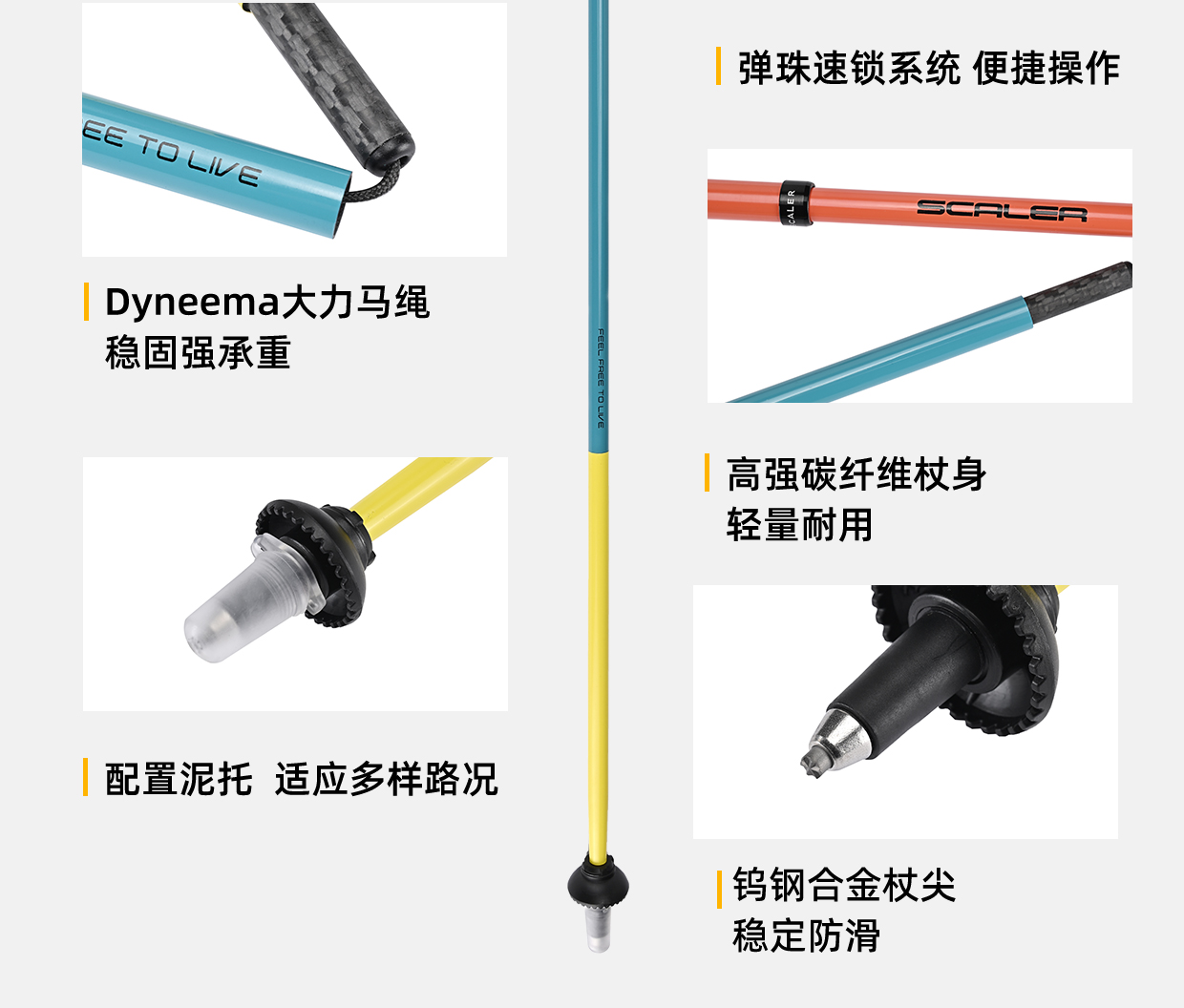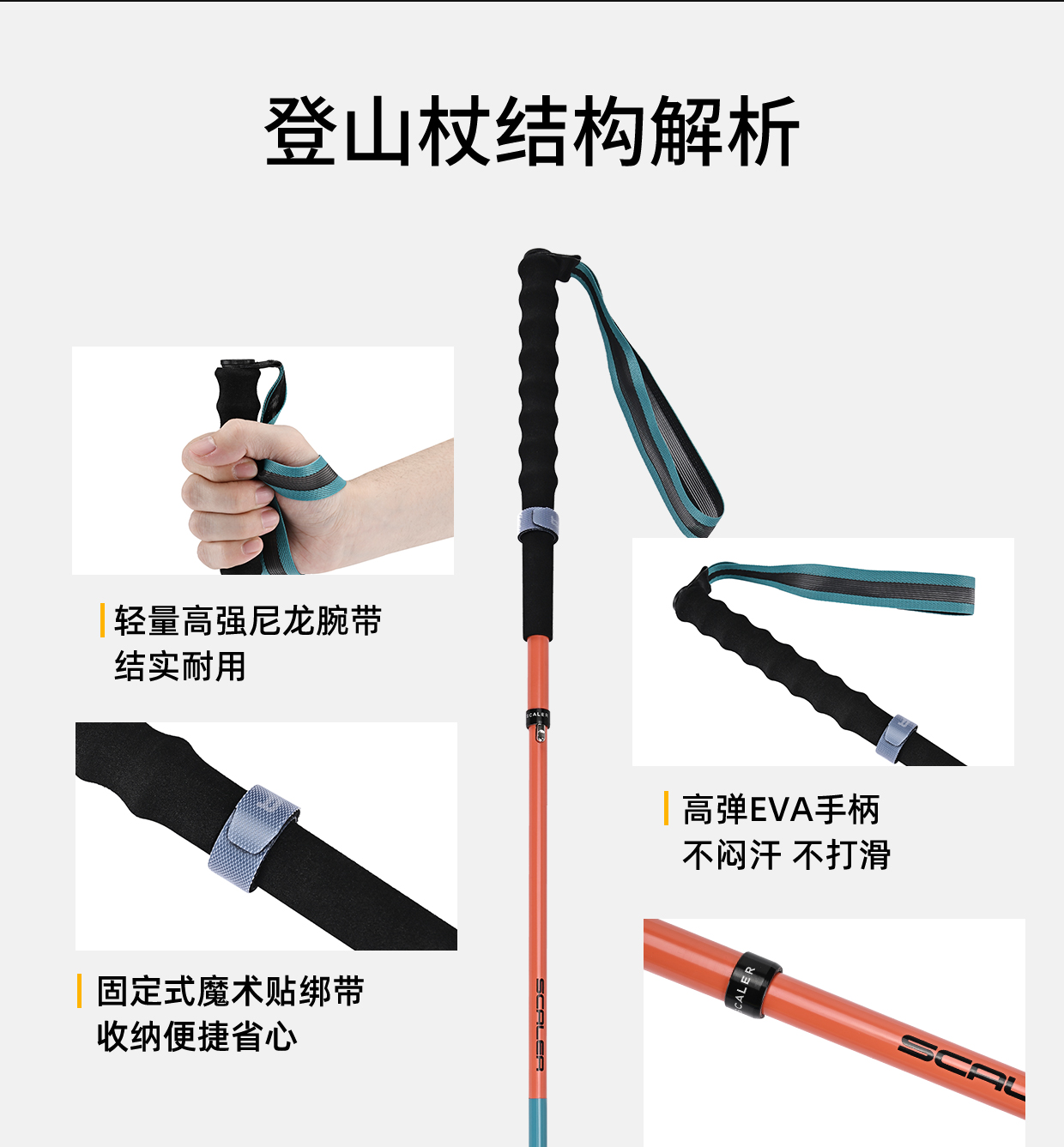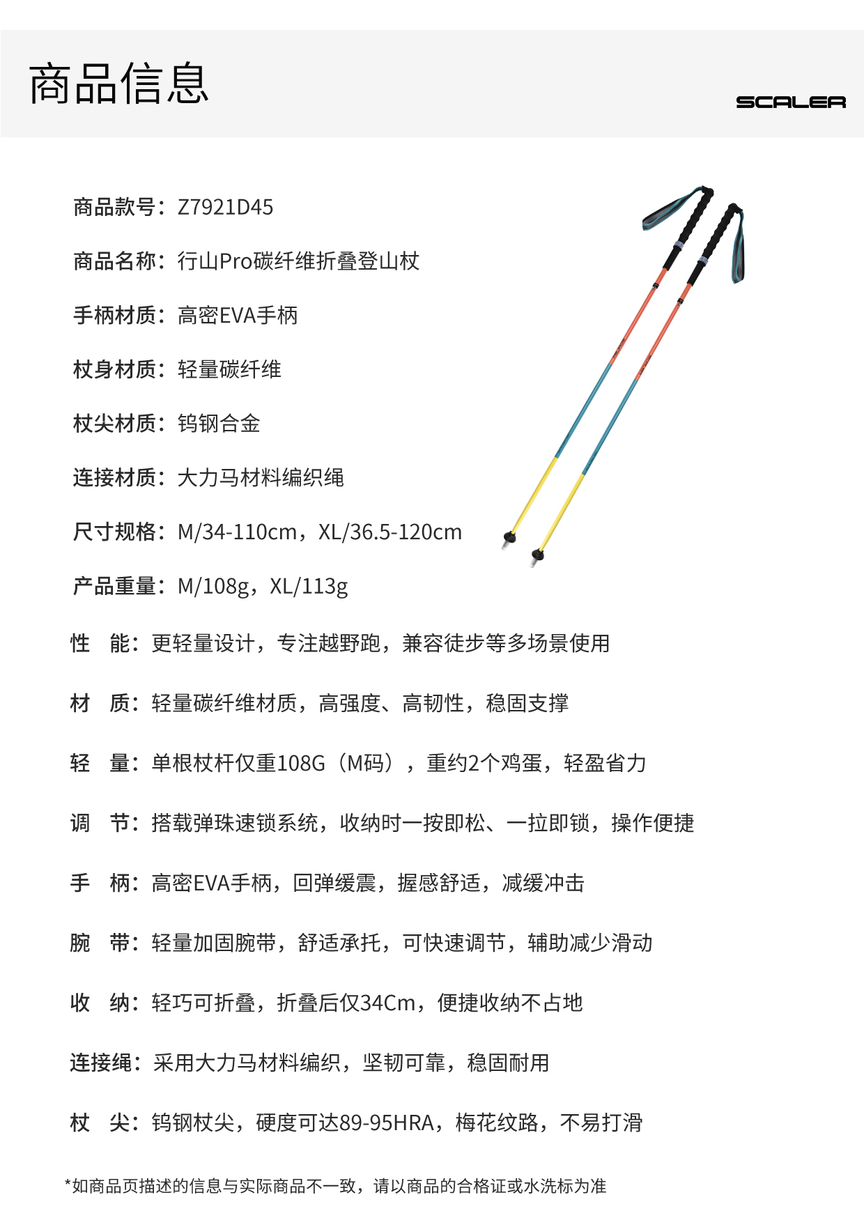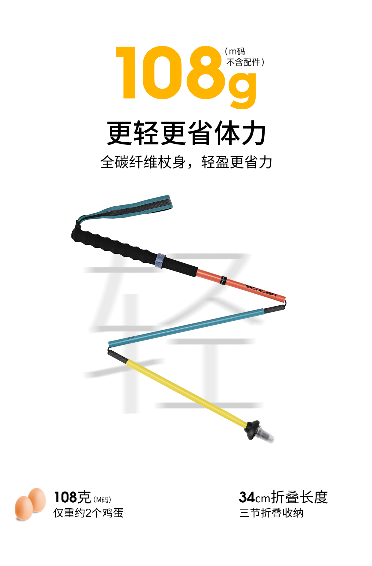 +【乐粉专属】行山PRO 思凯乐户外登山杖轻量碳纤维专业越野跑徒步折叠手杖Z7921D45