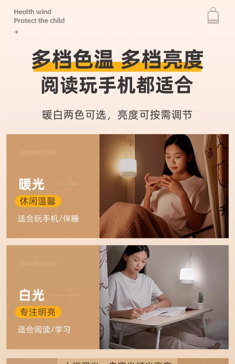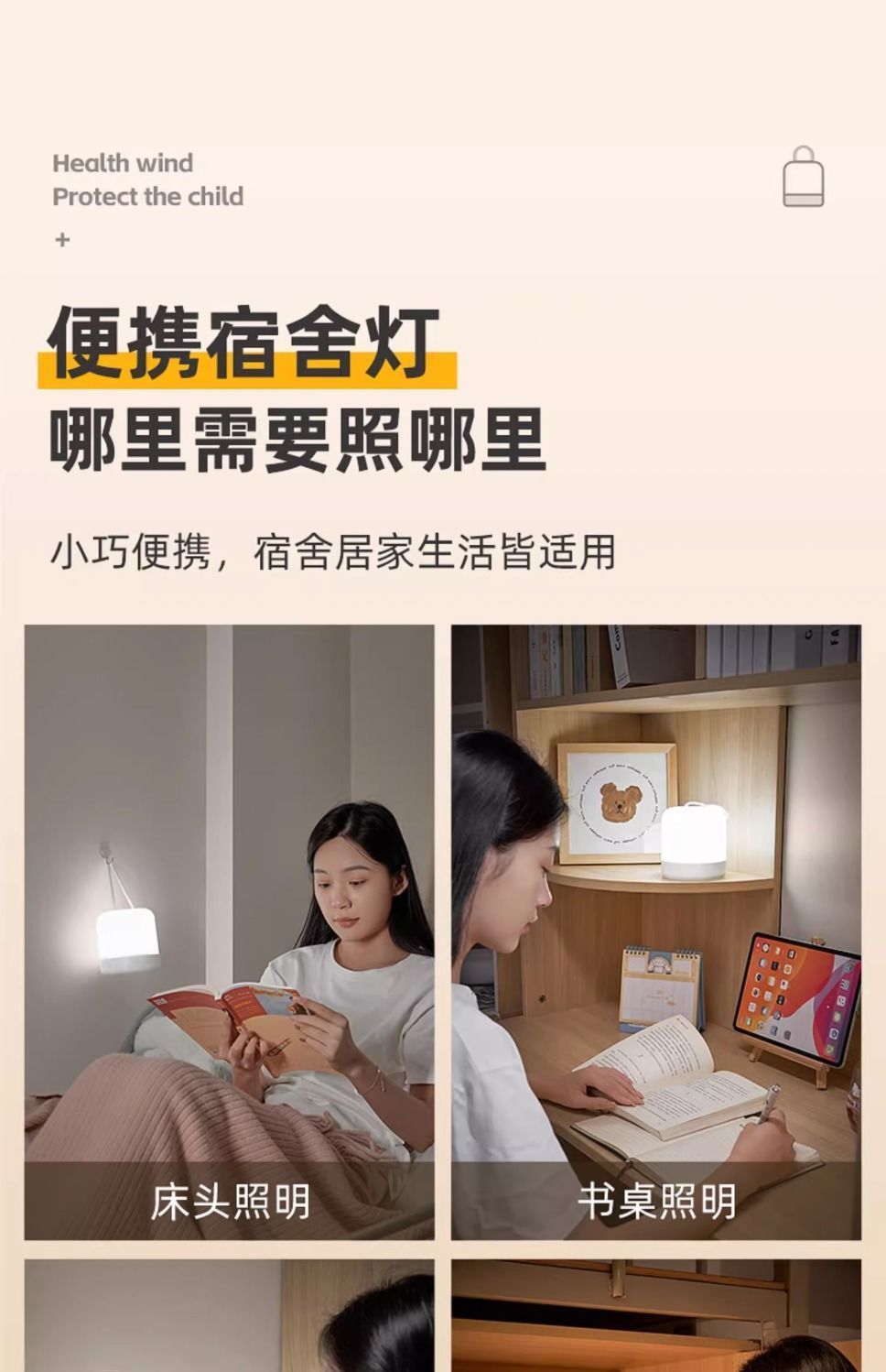 带遥控悬挂灯【悬挂式 多用小夜灯】宿舍床上多用柔光灯 护眼学习悬挂式 充电款大学寝室宿舍灯 小夜灯床上