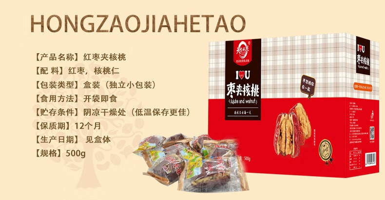 天生好果红枣夹核桃仁礼盒500g员工福利推荐送礼盒零食小吃礼包
