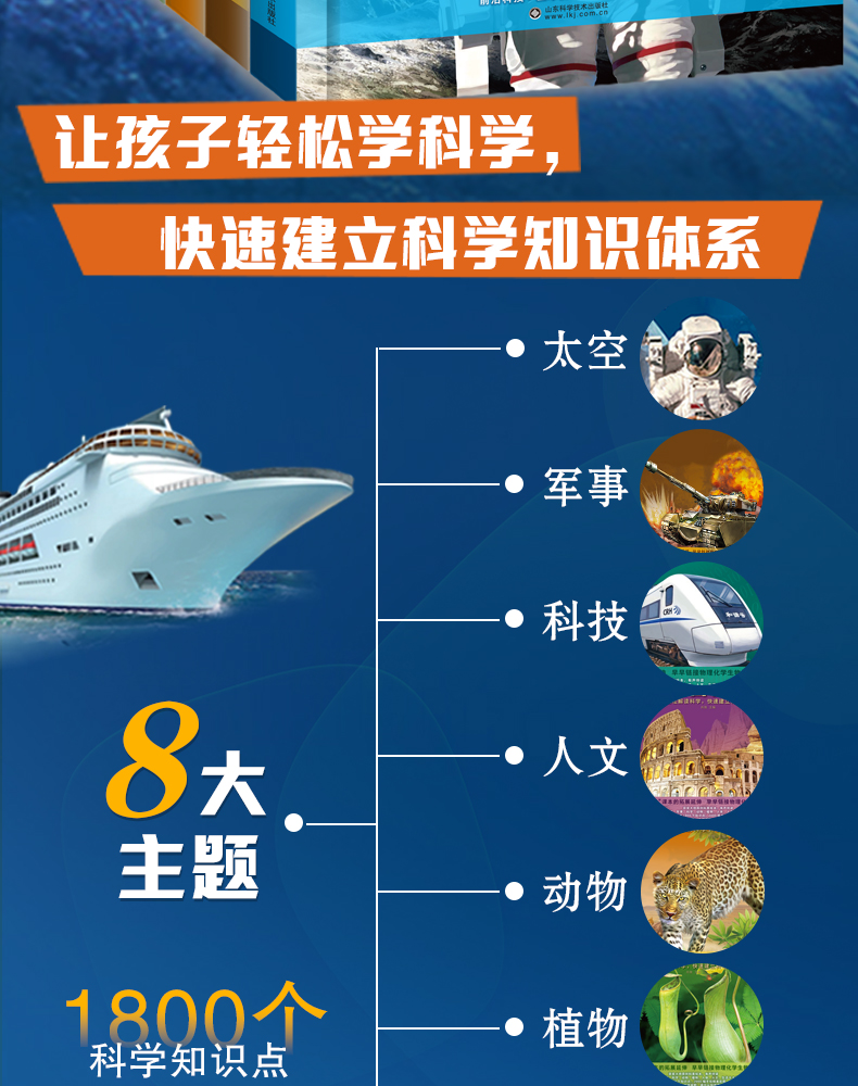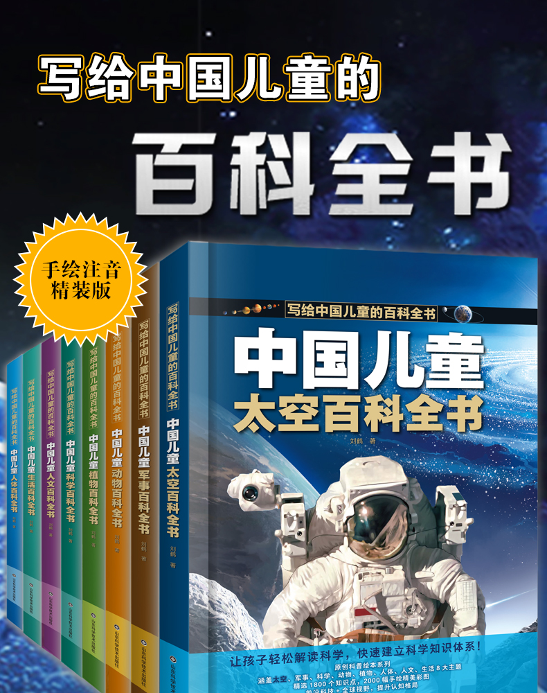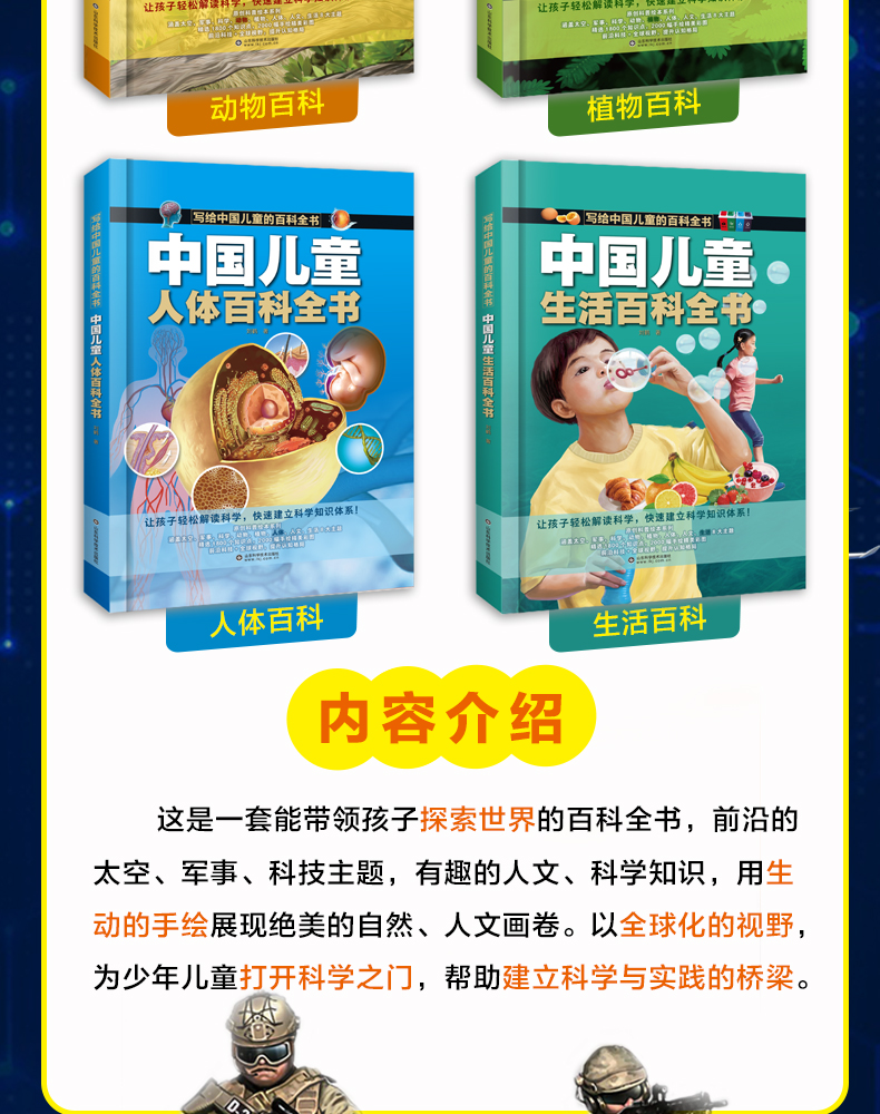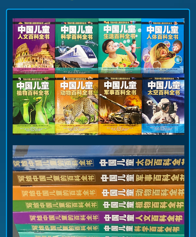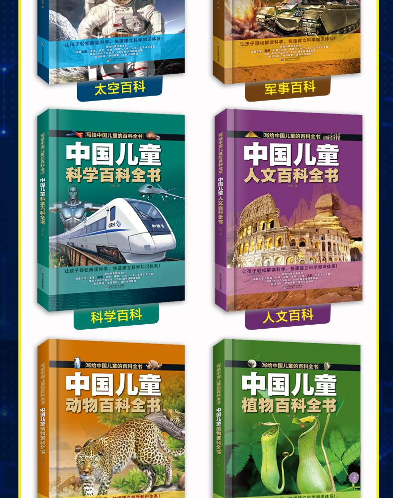 【精装硬壳】中国儿童百科全书全8册 含:军事 太空 动物 植物 人问 科学等