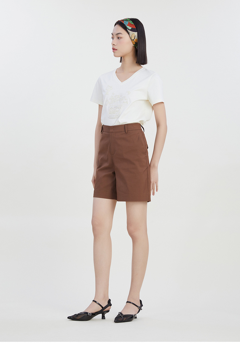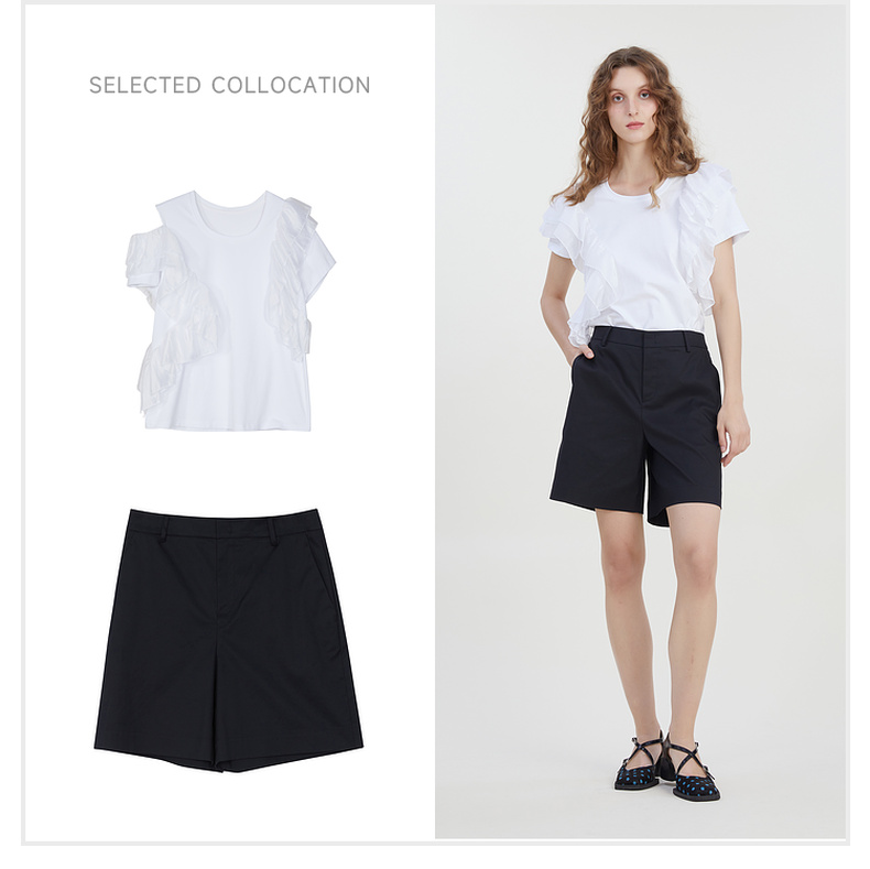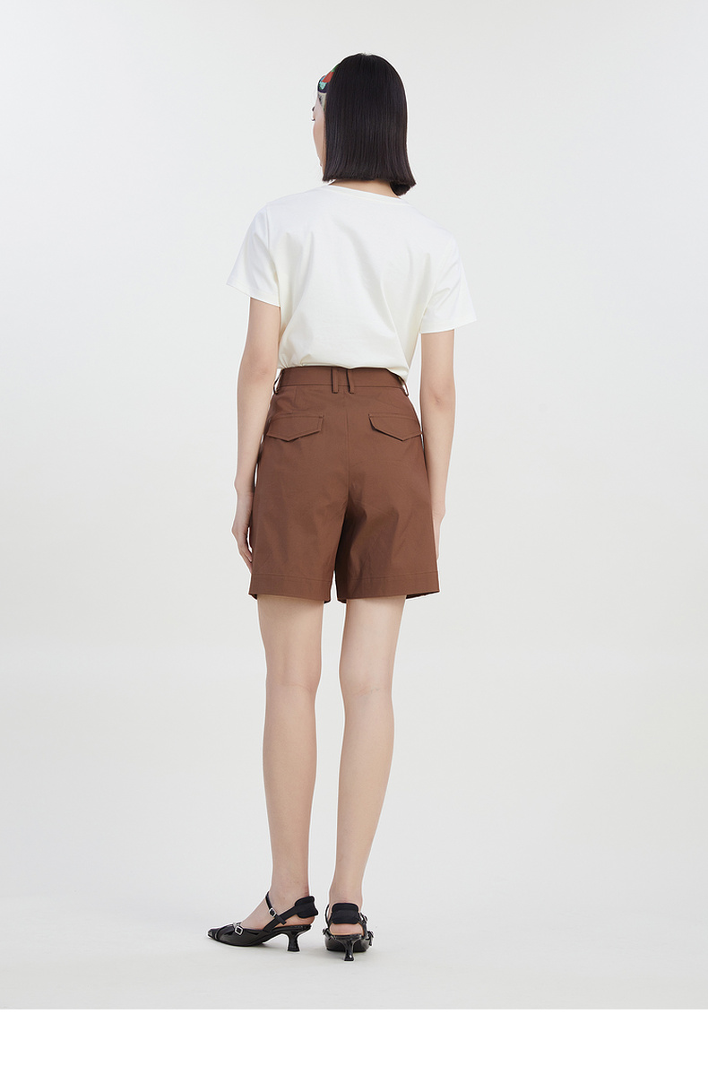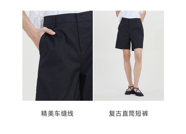 谜底修身百搭短裤女2023夏新款时尚简约纯色高腰直筒裤232MK0508