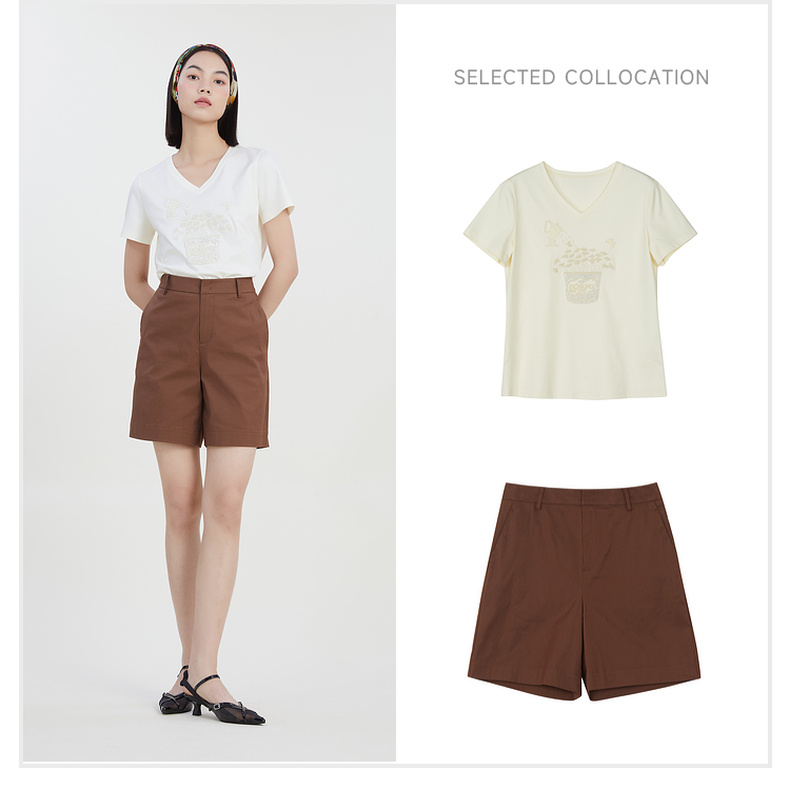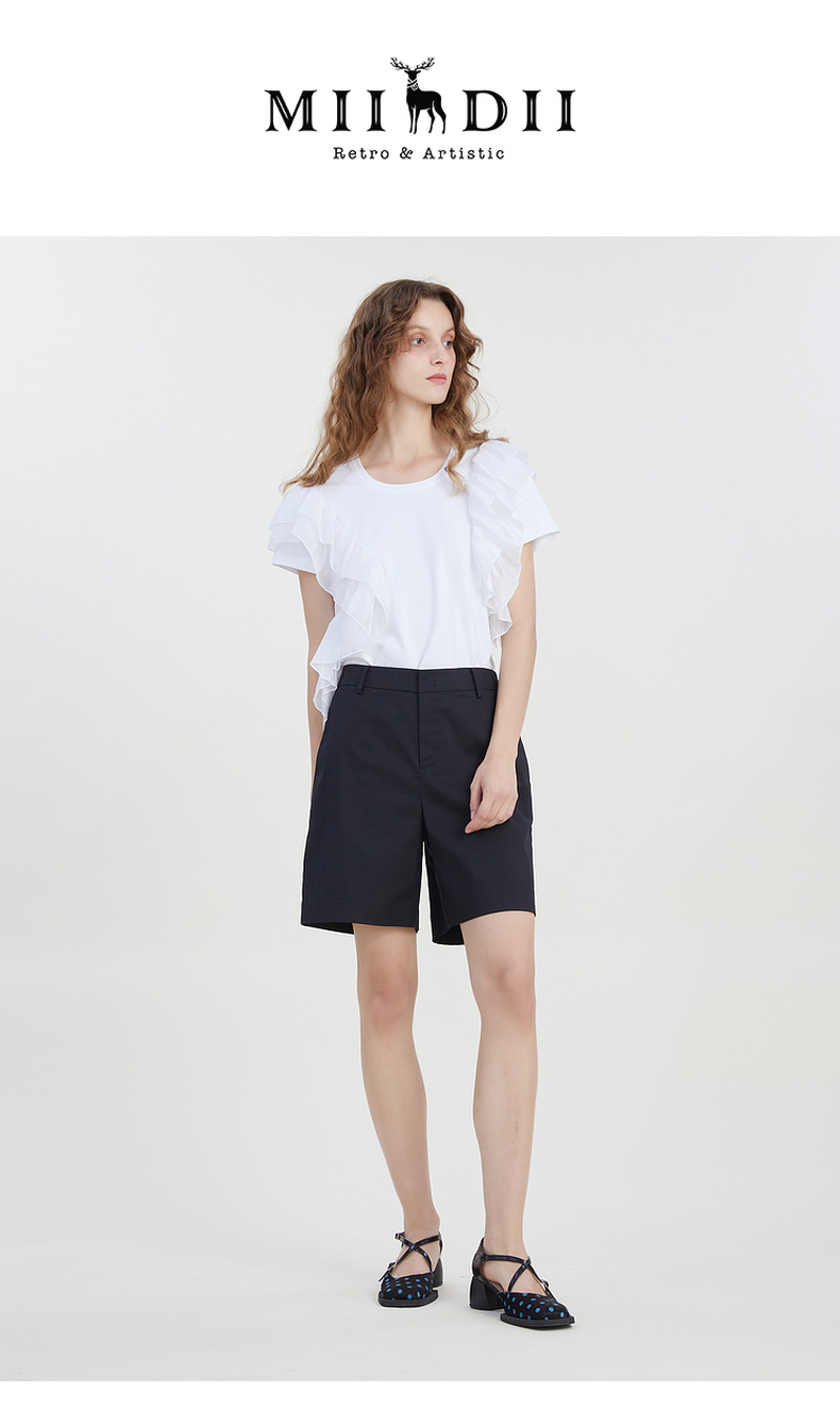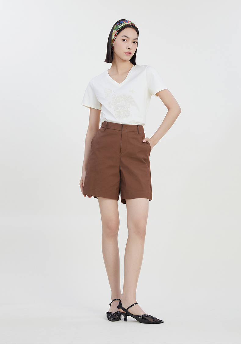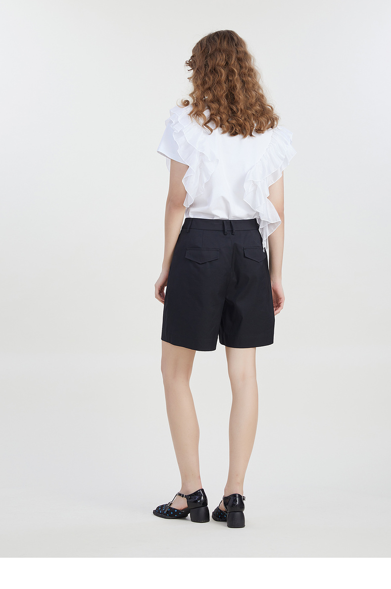 谜底修身百搭短裤女2023夏新款时尚简约纯色高腰直筒裤232MK0508