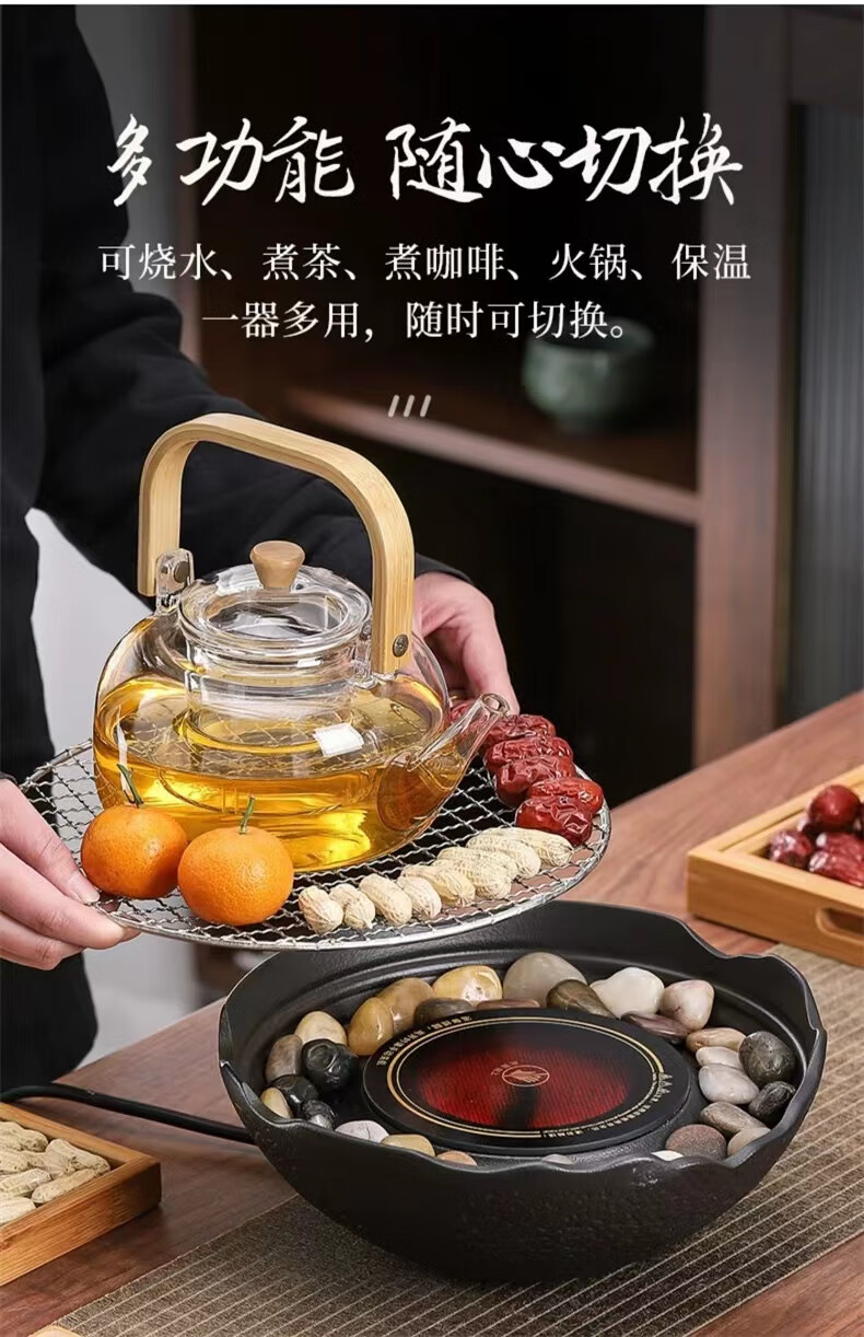 飞图乐(FTLY)围炉煮茶套装(陶瓷电陶炉+玻璃壶)黑色DTL0102