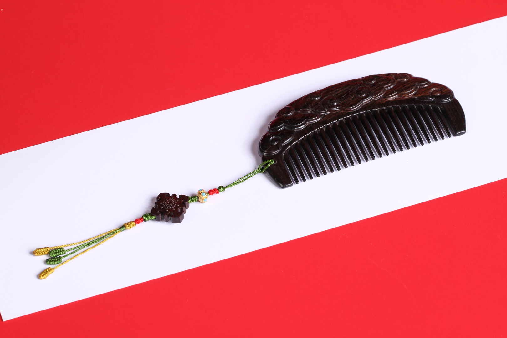 梳身装饰紫檀雕刻而成的四叶如意吊坠,