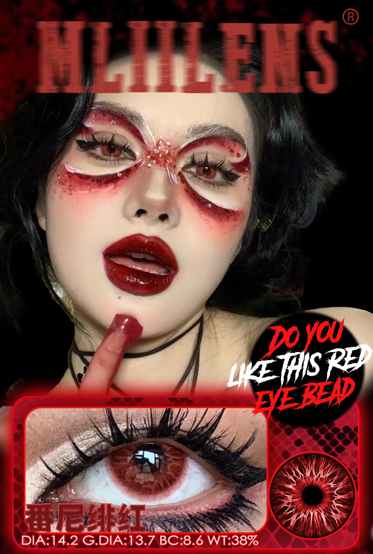 Mlii Lens 番尼绯红 年抛 两片 14.2mm 参考着色 13.7mm 基弧 8.6 含水 38% 韩国进口