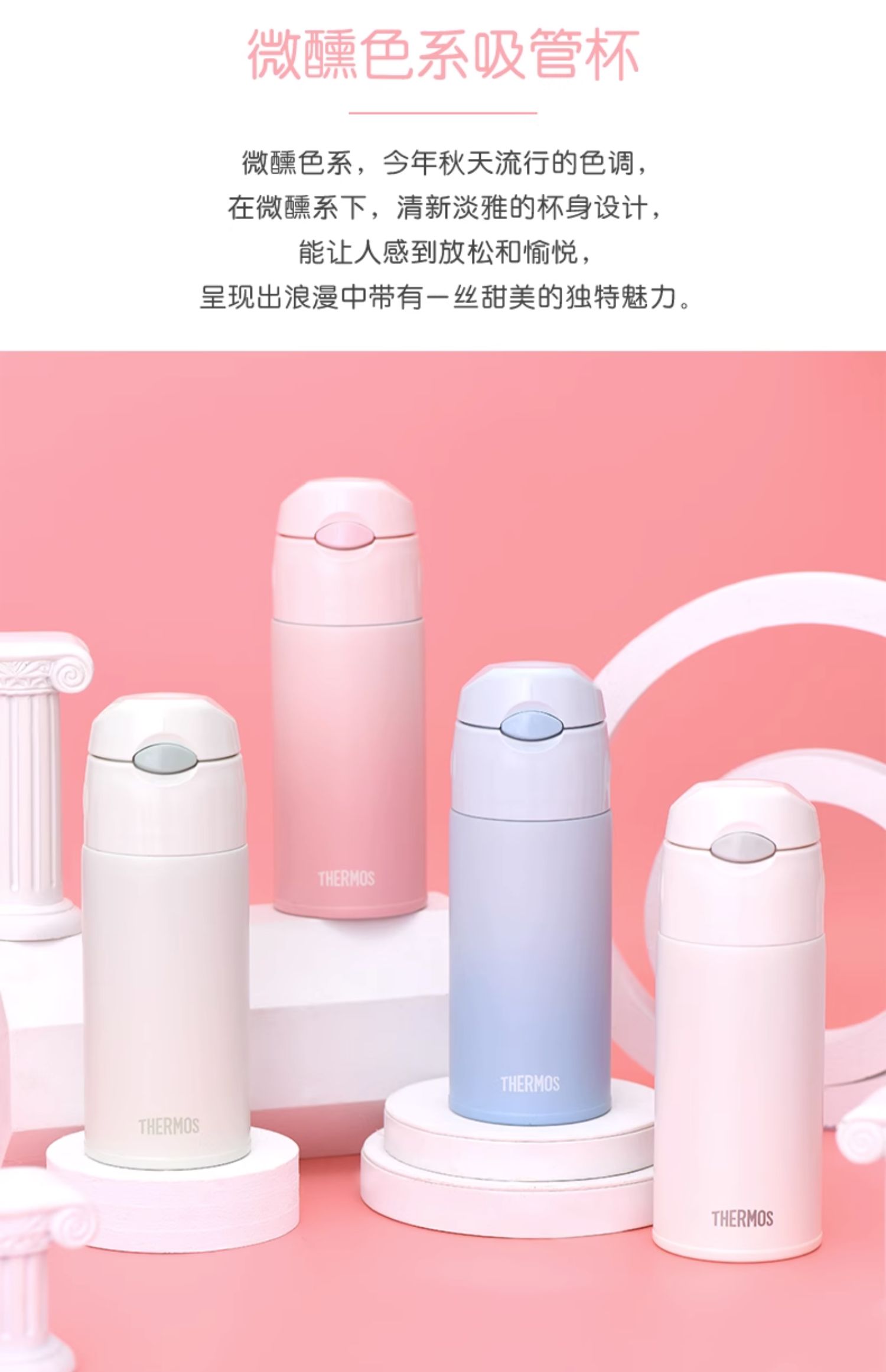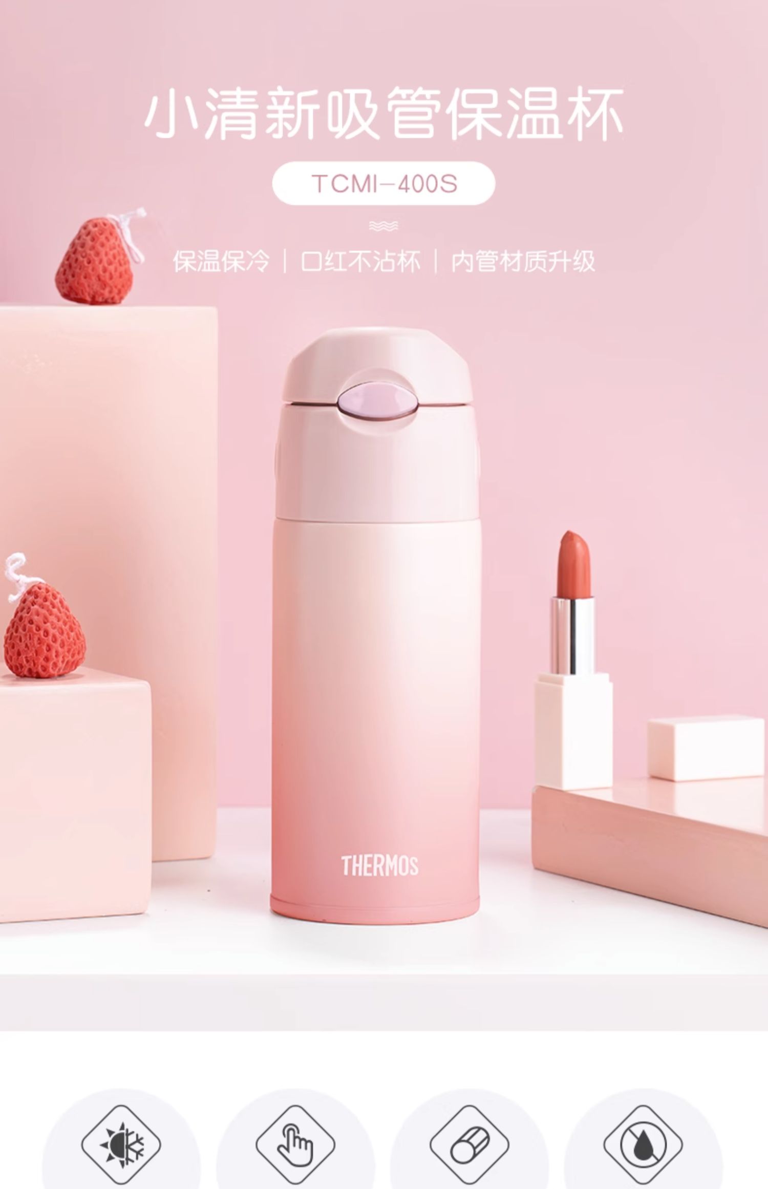 膳魔师小清新便携316L不锈钢吸管保温杯TCMI-400S