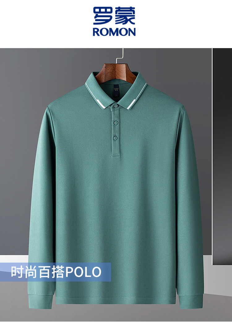 【福利款】罗蒙男士春秋经典双面领男式polo衫男长袖t恤男打底衫男士t恤