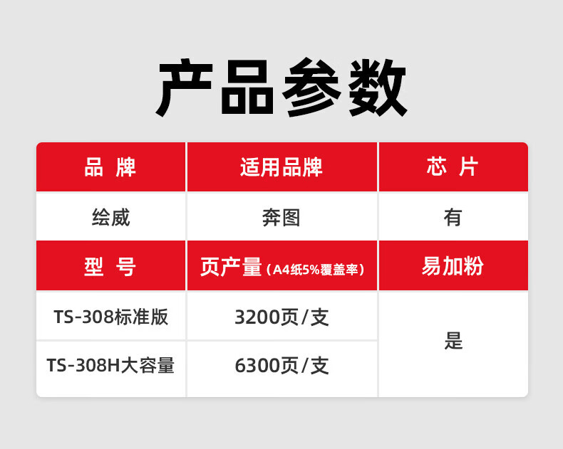 绘威TS-308易加粉硒鼓 适用奔图PANTUM P3508DN打印机专用碳粉硒鼓 墨盒墨粉盒