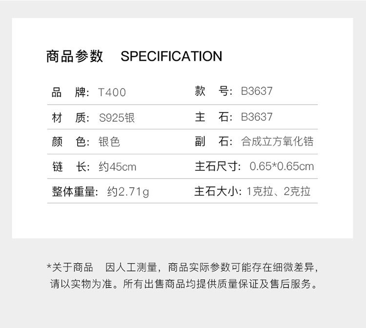 T400莫桑石系列 :采用925银、莫桑石等原料工艺制作而成。