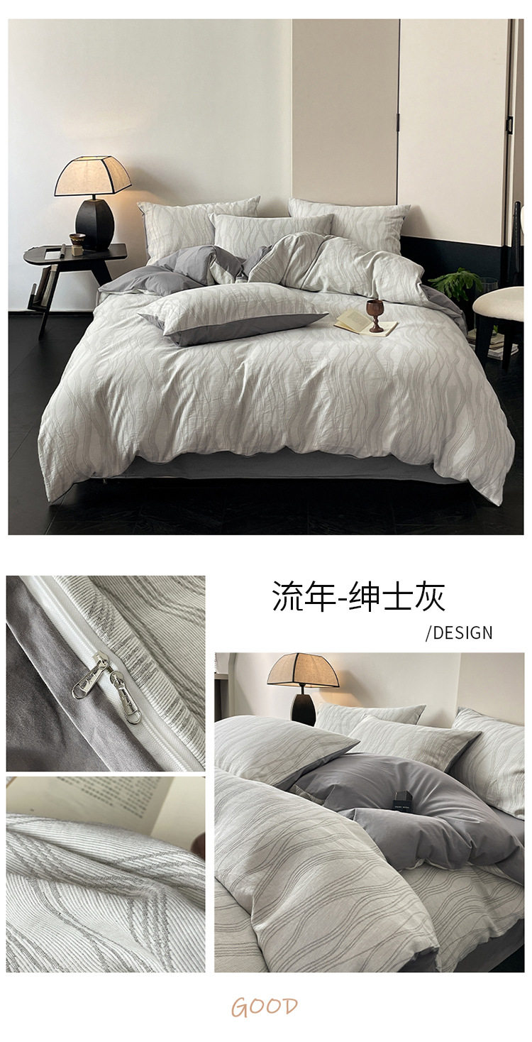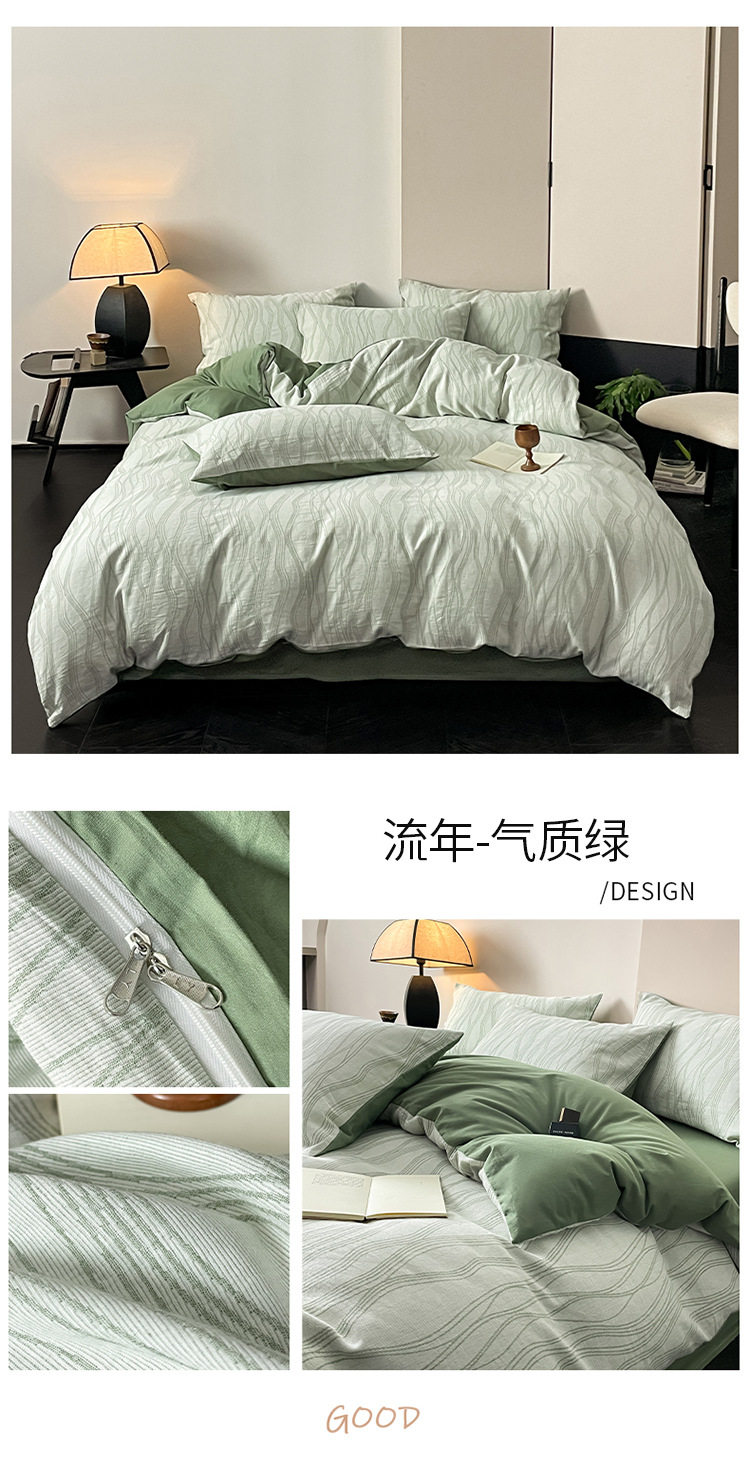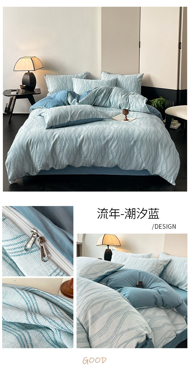 日式无印40sA类全棉水洗绵三层纱提花四件套良品柔软透气床品件套