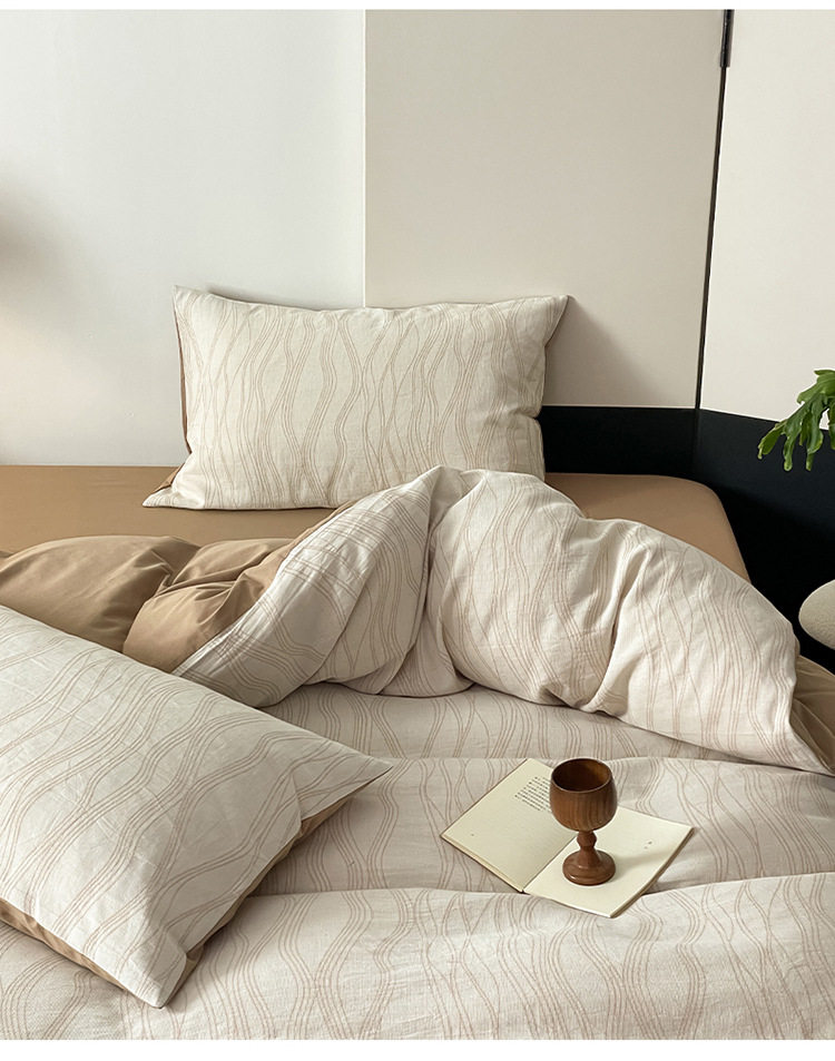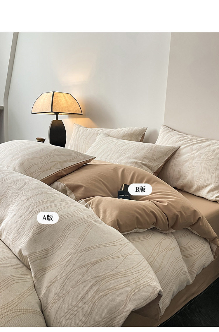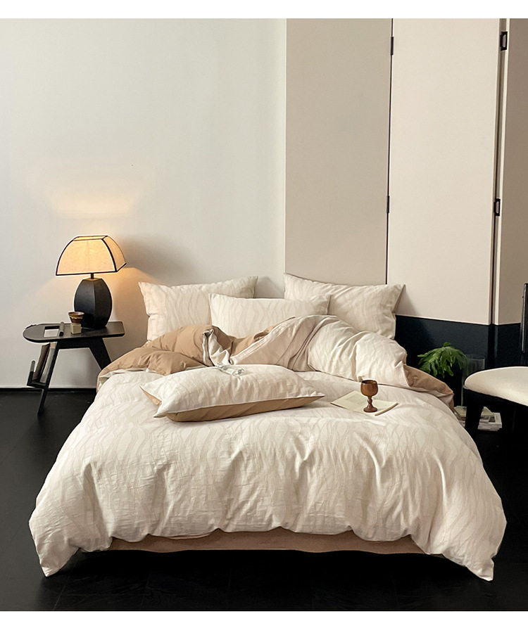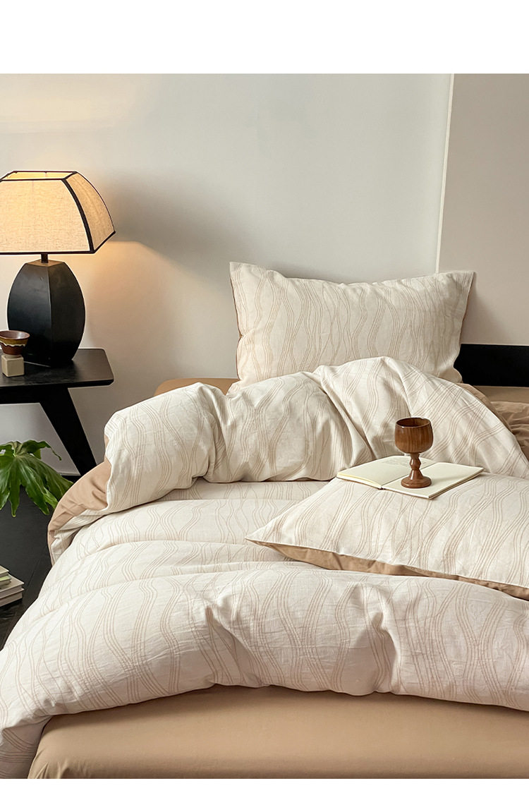 日式无印40sA类全棉水洗绵三层纱提花四件套良品柔软透气床品件套