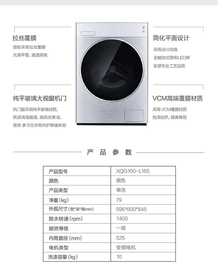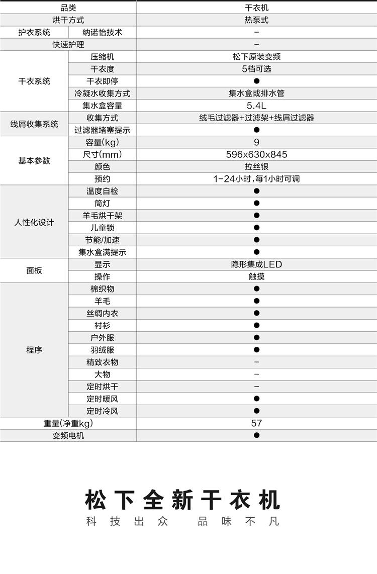 松下 洗烘套装 10公斤洗衣机XQG100-L165+9公斤热泵烘干机NH-9095D 10KG洗+9KG干