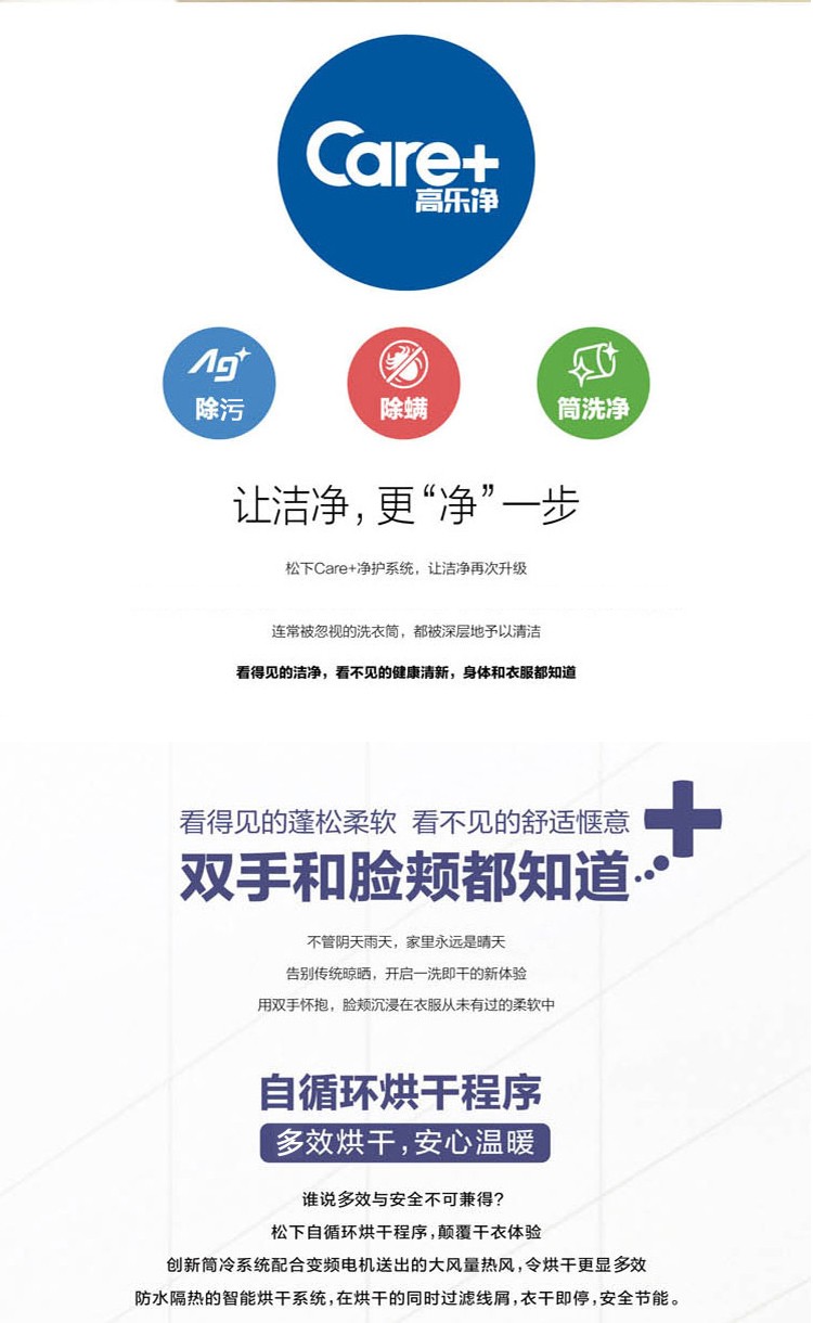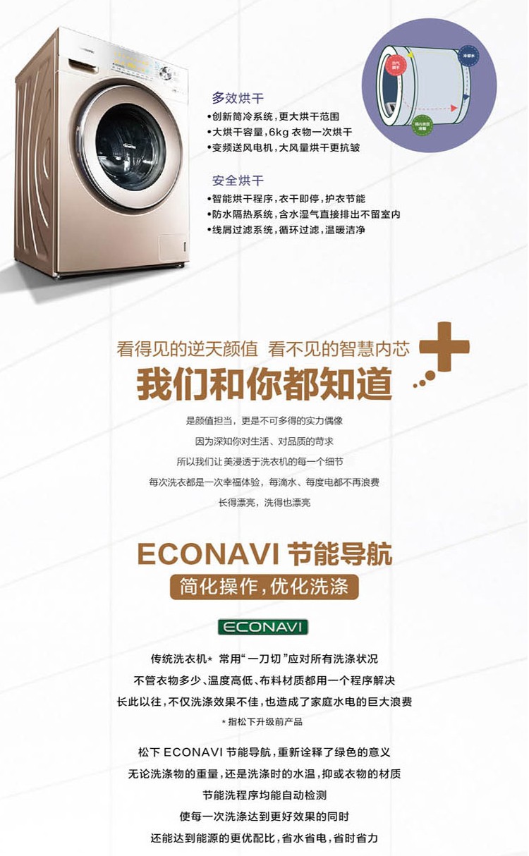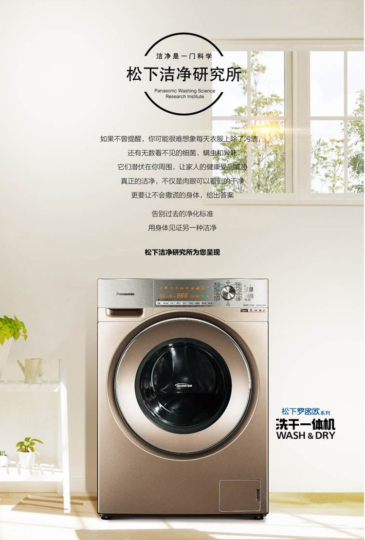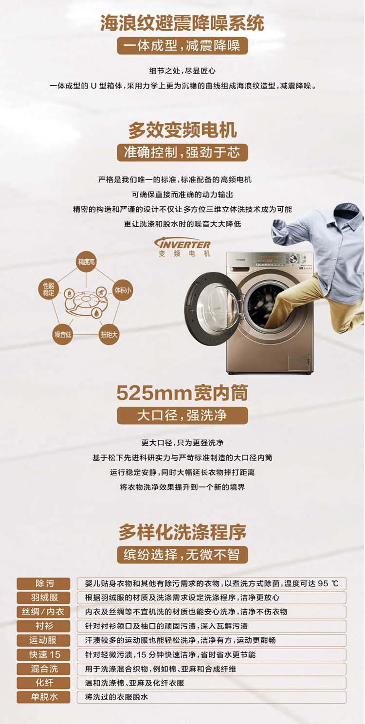 【盛元新生活】松下(Panasonic) XQG100-EG12N 10公斤带烘干除菌除变频滚筒洗衣机螨香槟金
