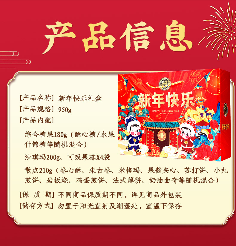徐福记新年糖果糕点礼盒装945g 酥心糖饼干沙琪玛春节日零食大礼包 商品图4