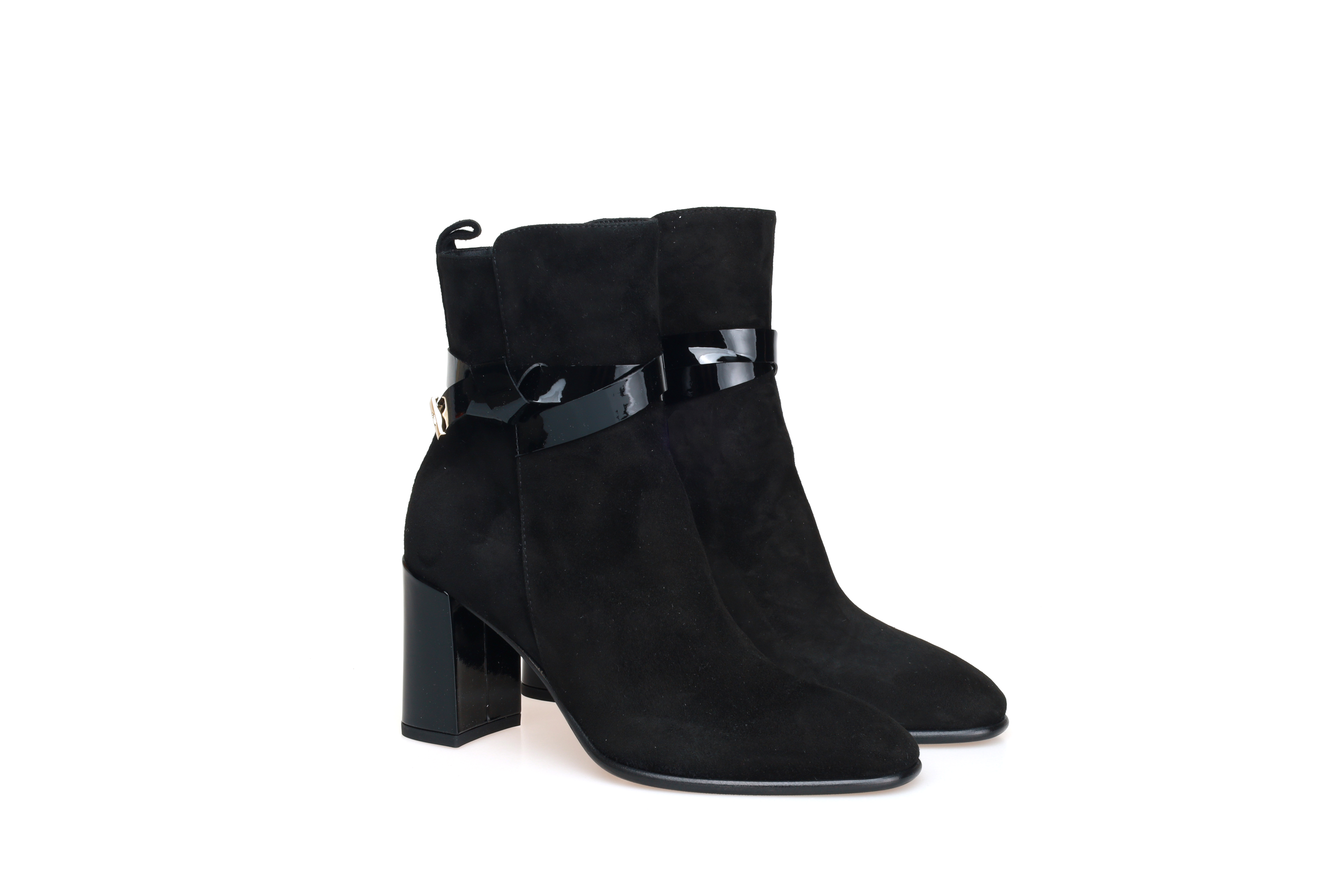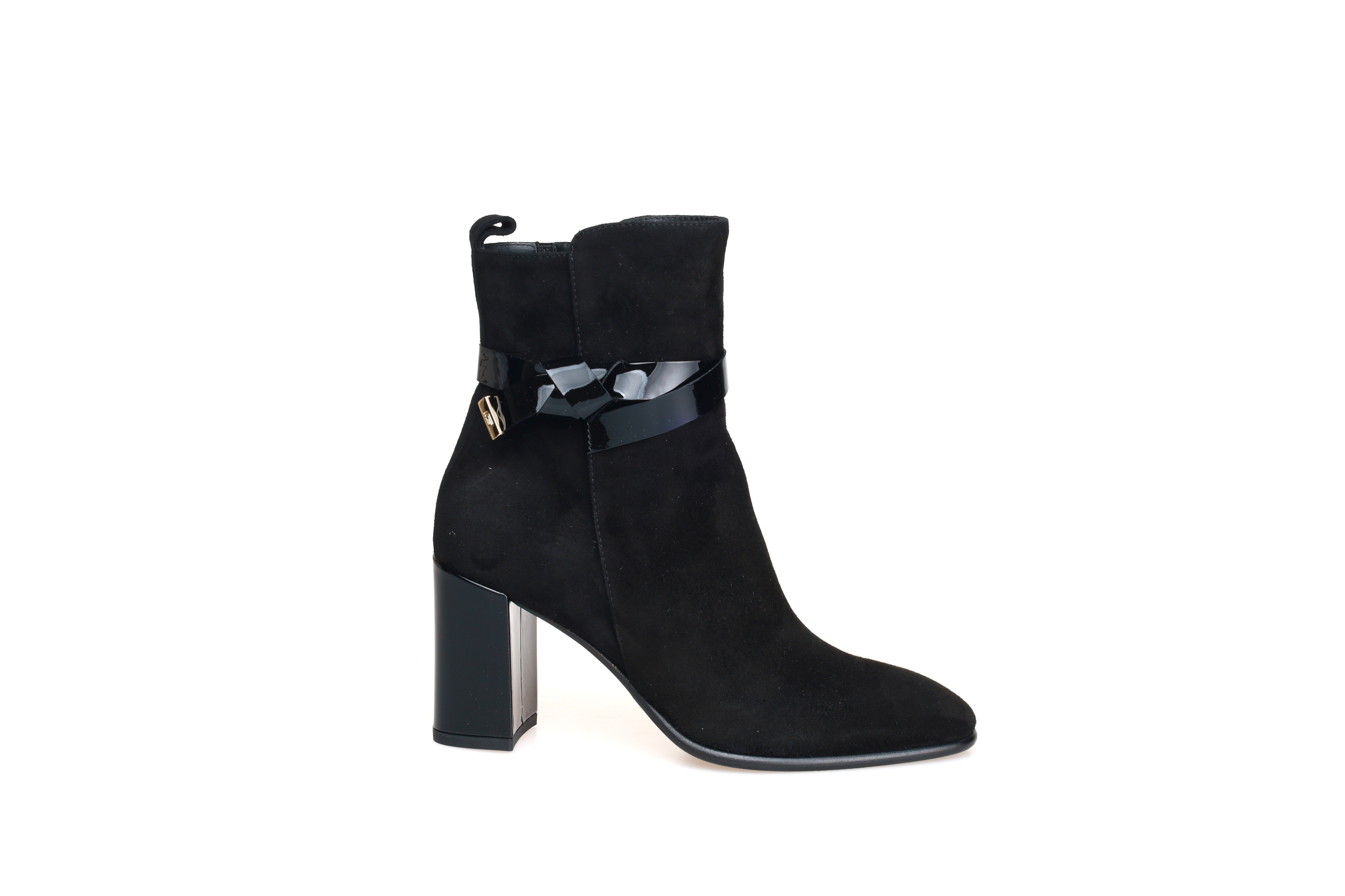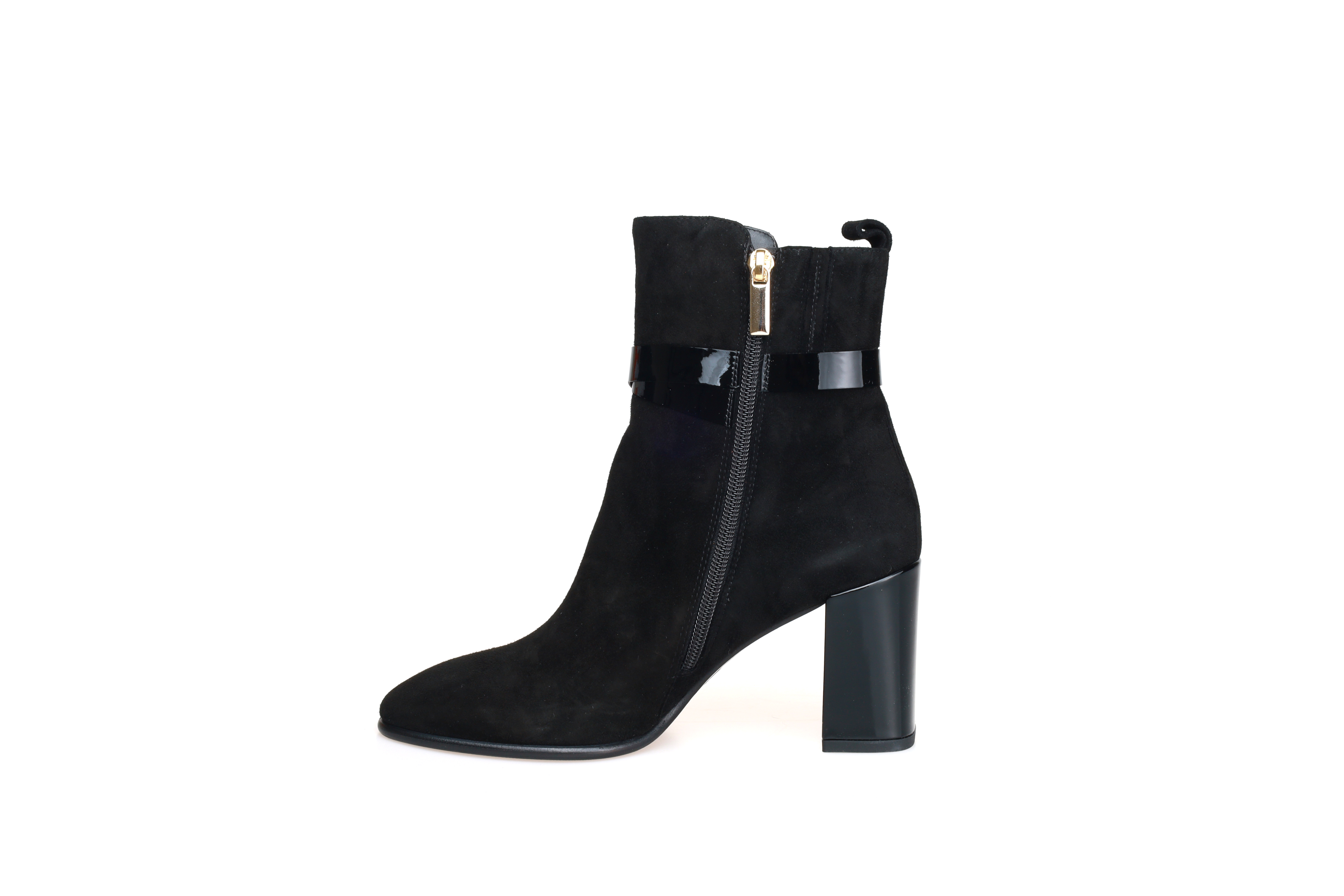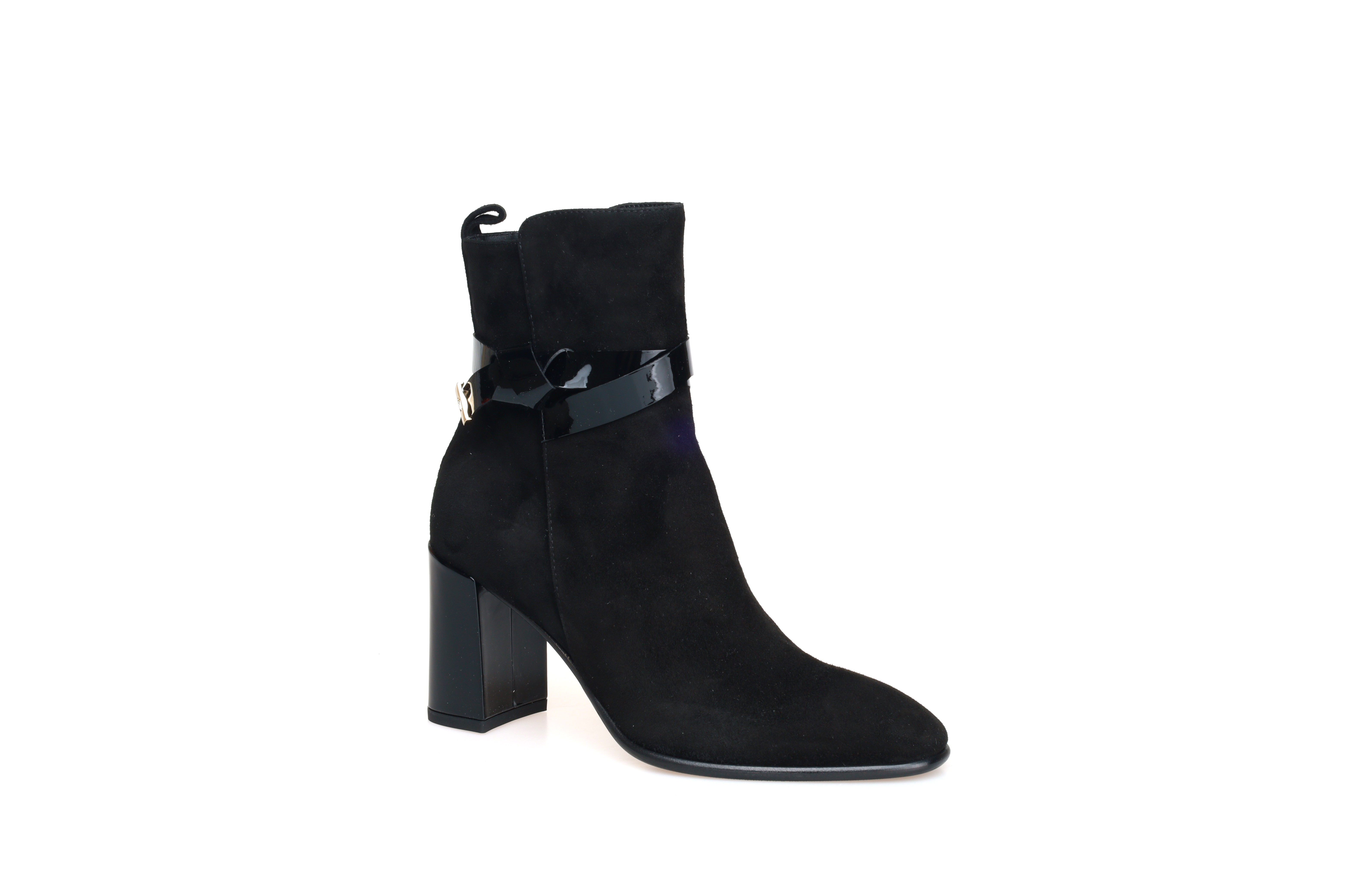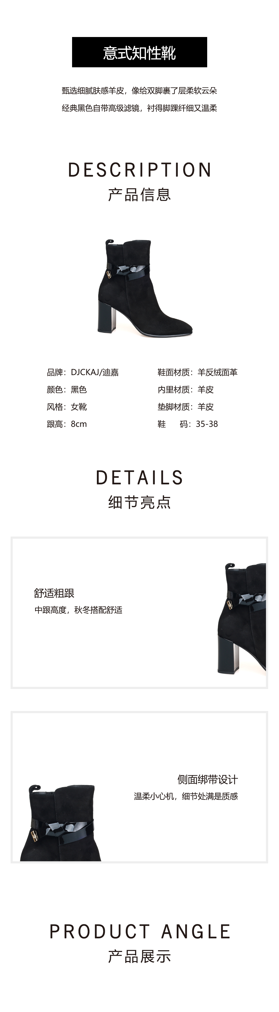 豪麟名鞋进口迪嘉女鞋短靴羊反绒面革W25290黑色
