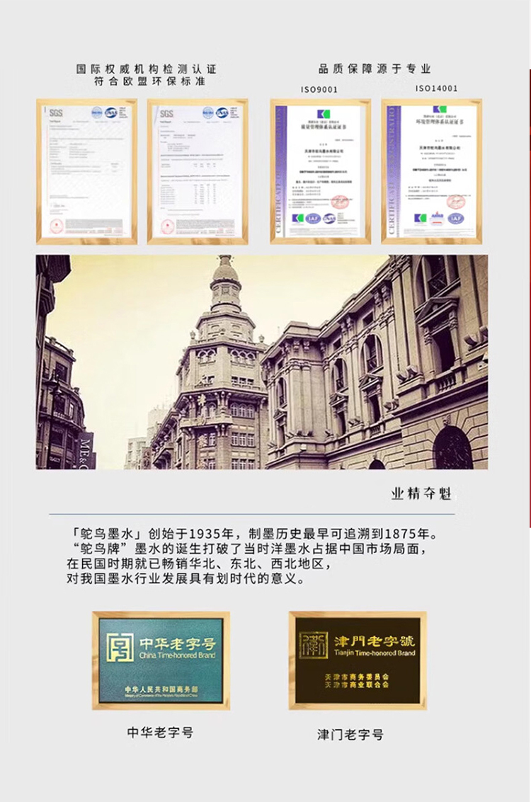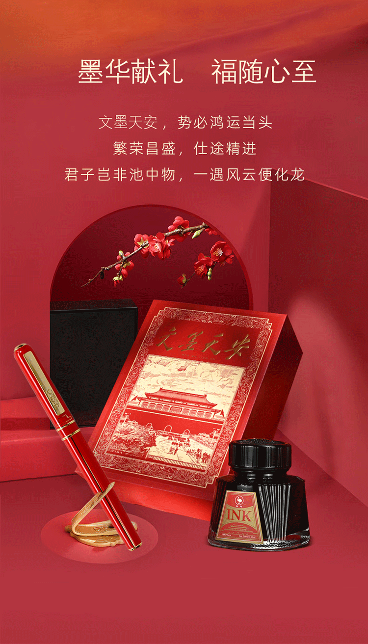 90年国货鸵鸟墨水匠心巨献 文墨天安钢笔礼盒 附赠定制墨水1瓶+墨囊7支+天安门文创限定包装