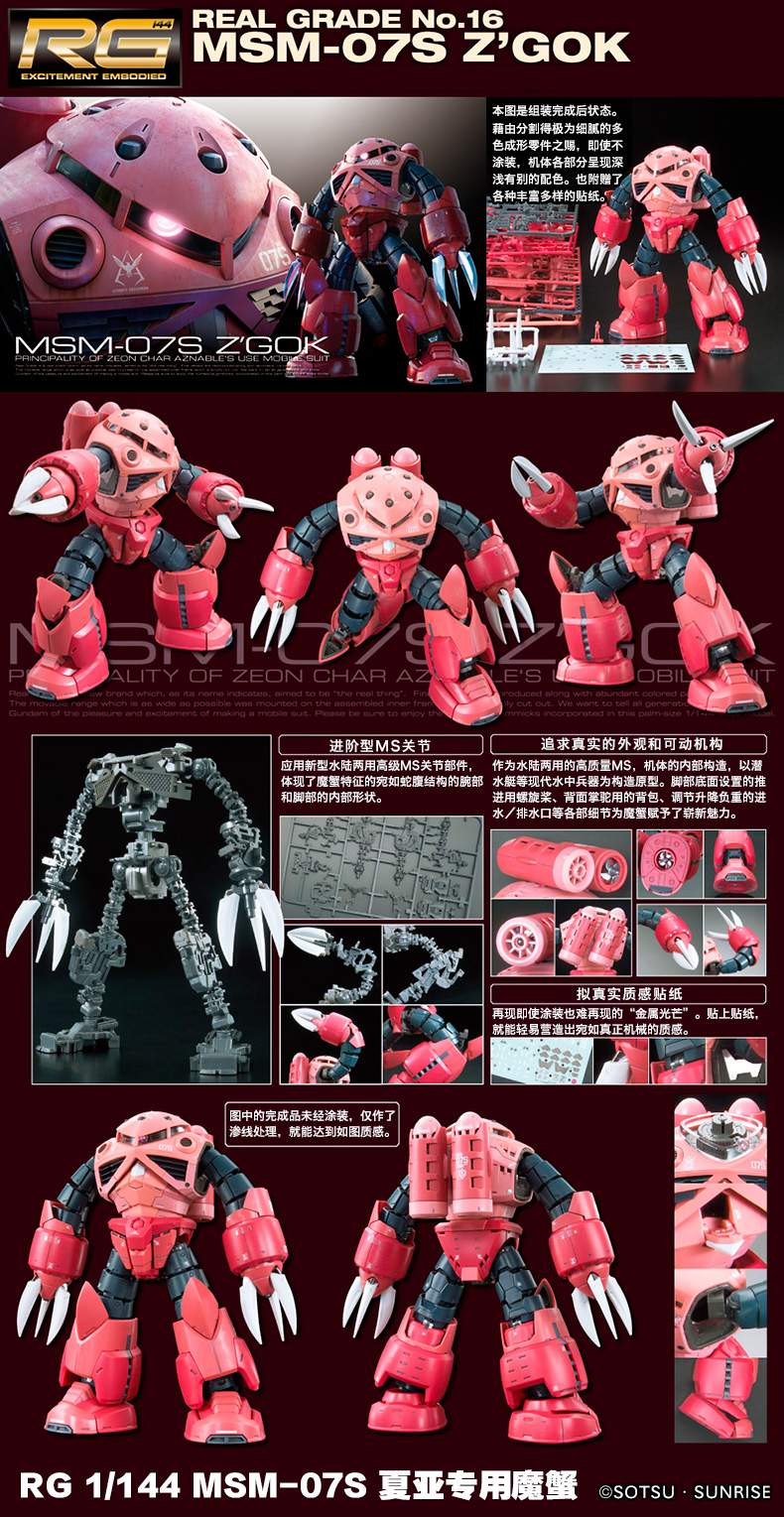 商品名称: 1/144 RG 魔蟹 夏亚专用型/Gundam/高达
