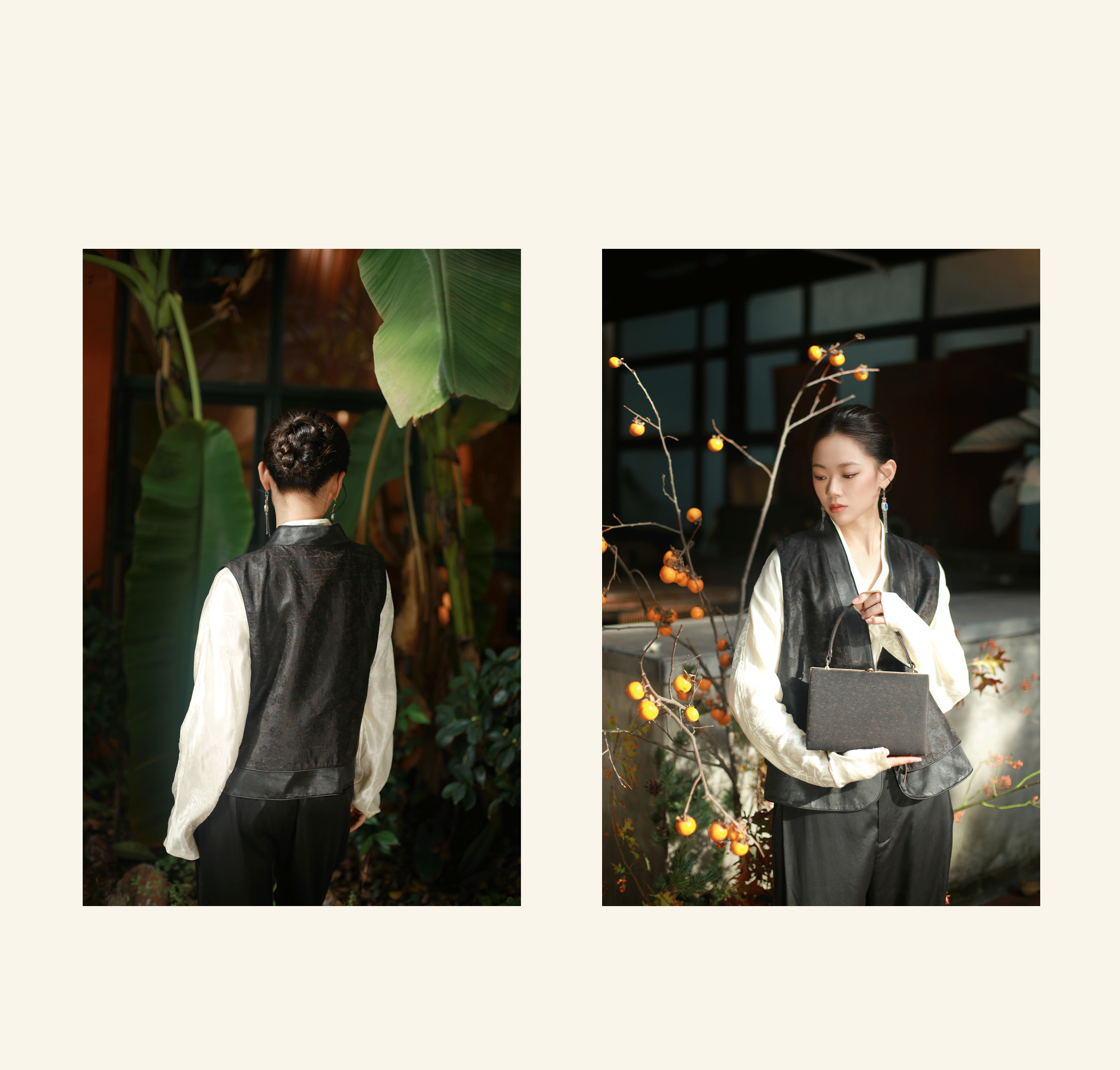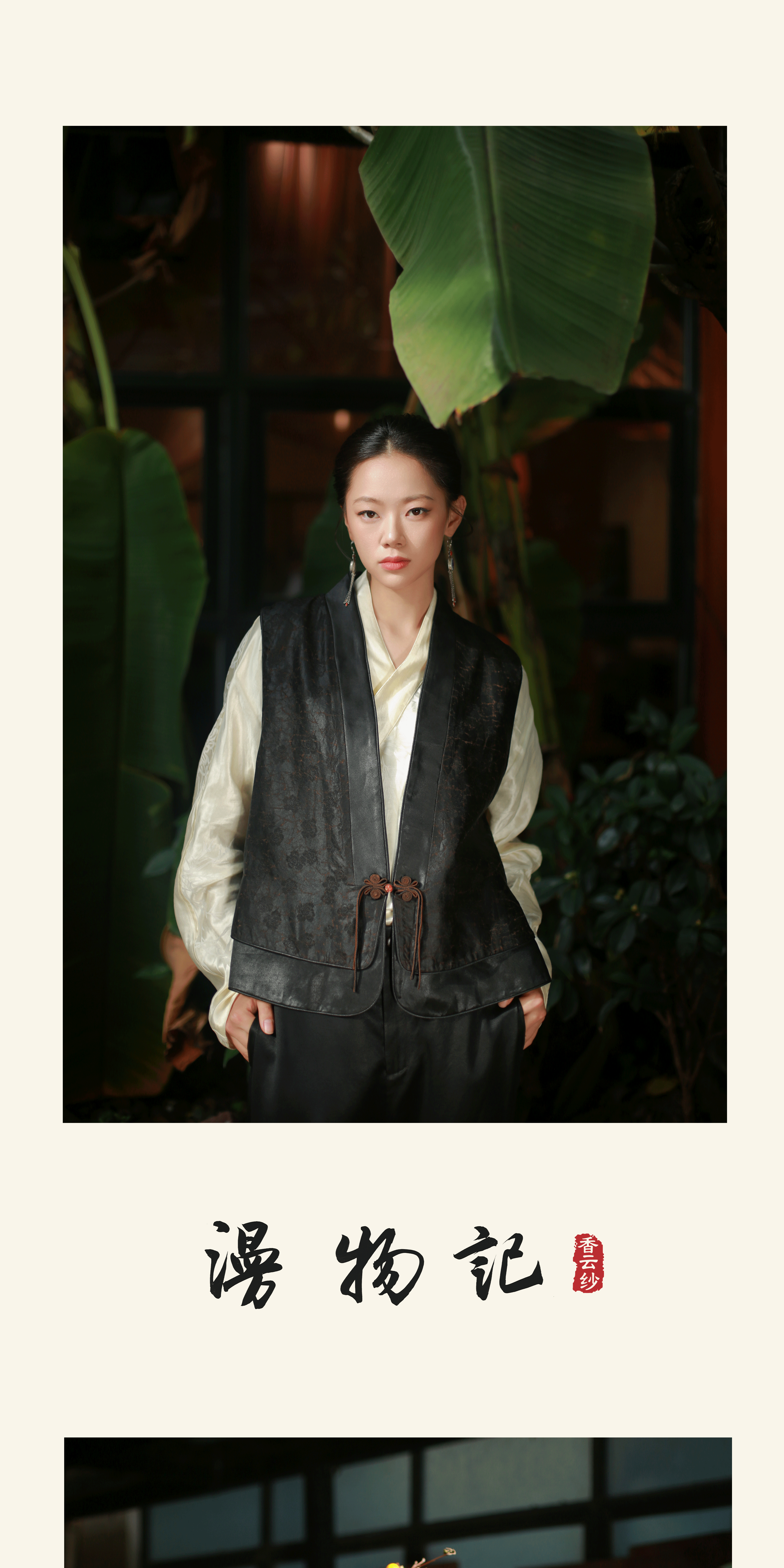 漫物记四经绞罗红云纱立领斜襟树叶扣上衣xys-w238