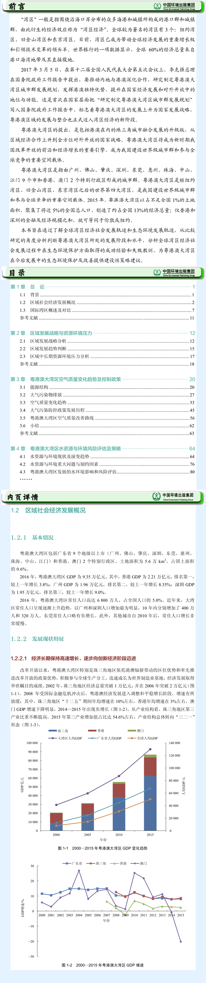 粤港澳大湾区是继纽约湾区、旧金山湾区和日本东京湾区之后,正在形成的世界第四大湾区。近日,粤港澳大湾区发展规划纲要已印发实施,规划将共建粤港澳大湾区优质生活圈作为湾区建设的六大重点之一。本书通过分析粤港澳大湾区生态环境质量变化及环境基础设施建设现状,辨析粤港澳大湾区发展过程面临的资源环境压力,通过与国际著名湾区经济社会发展和生态环境变化的阶段性对比,总结生态环境保护的经验教训,针对粤港澳大湾区的特点和实际,研究湾区生态环境治理策略,提出促进区域生态环境治理体系现代化的对策建议。