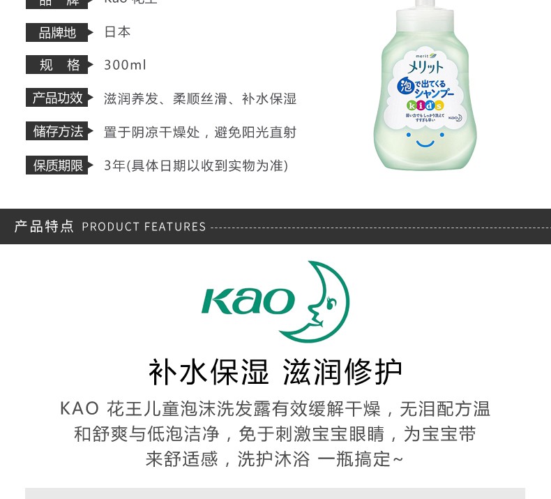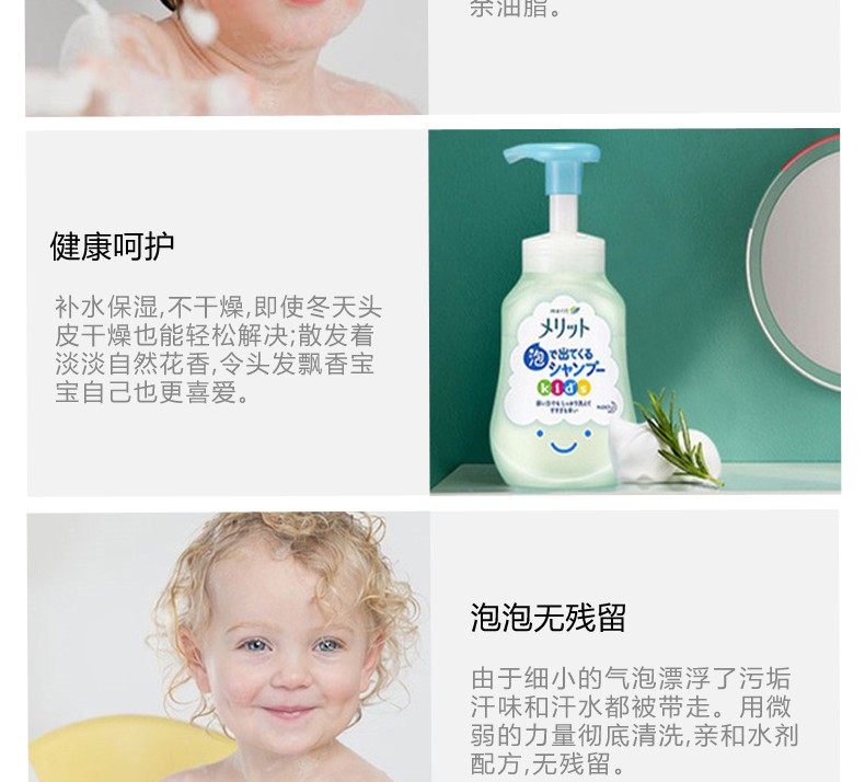 日本花王旗下专业儿童洗发水,弱酸保护,无硅油,不刺激,不辣眼睛.