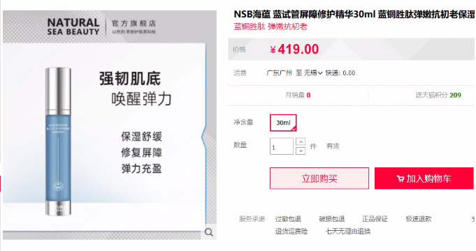 【商品名称】NSB 海蕴水光新生舒缓修护精华液30ml