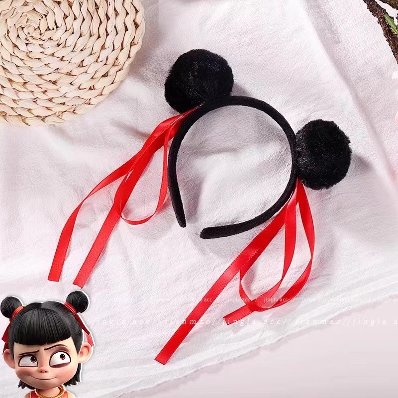 【魔童降世 丸子头 哪吒发箍】cos哪吒发箍道具 无痛佩戴 绒布绸带 防滑头饰