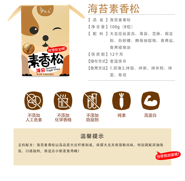 【悦意】海苔素香松100g*2盒 香醇酥脆 豆制品蛋白 即食素食小零食