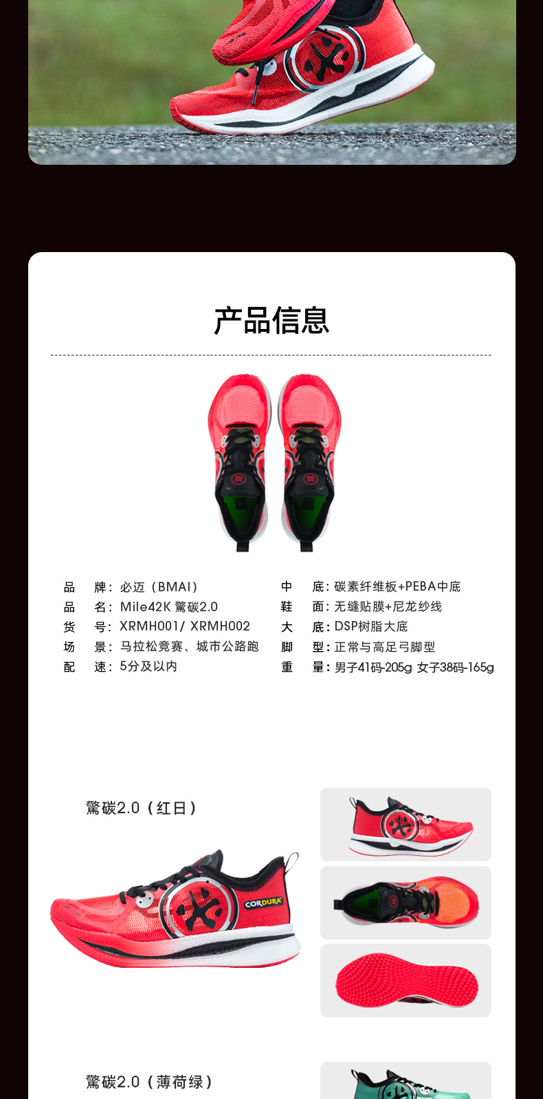 必迈42K惊碳2.0新款男女超轻便回弹马拉松专业跑鞋碳板竞速跑步鞋