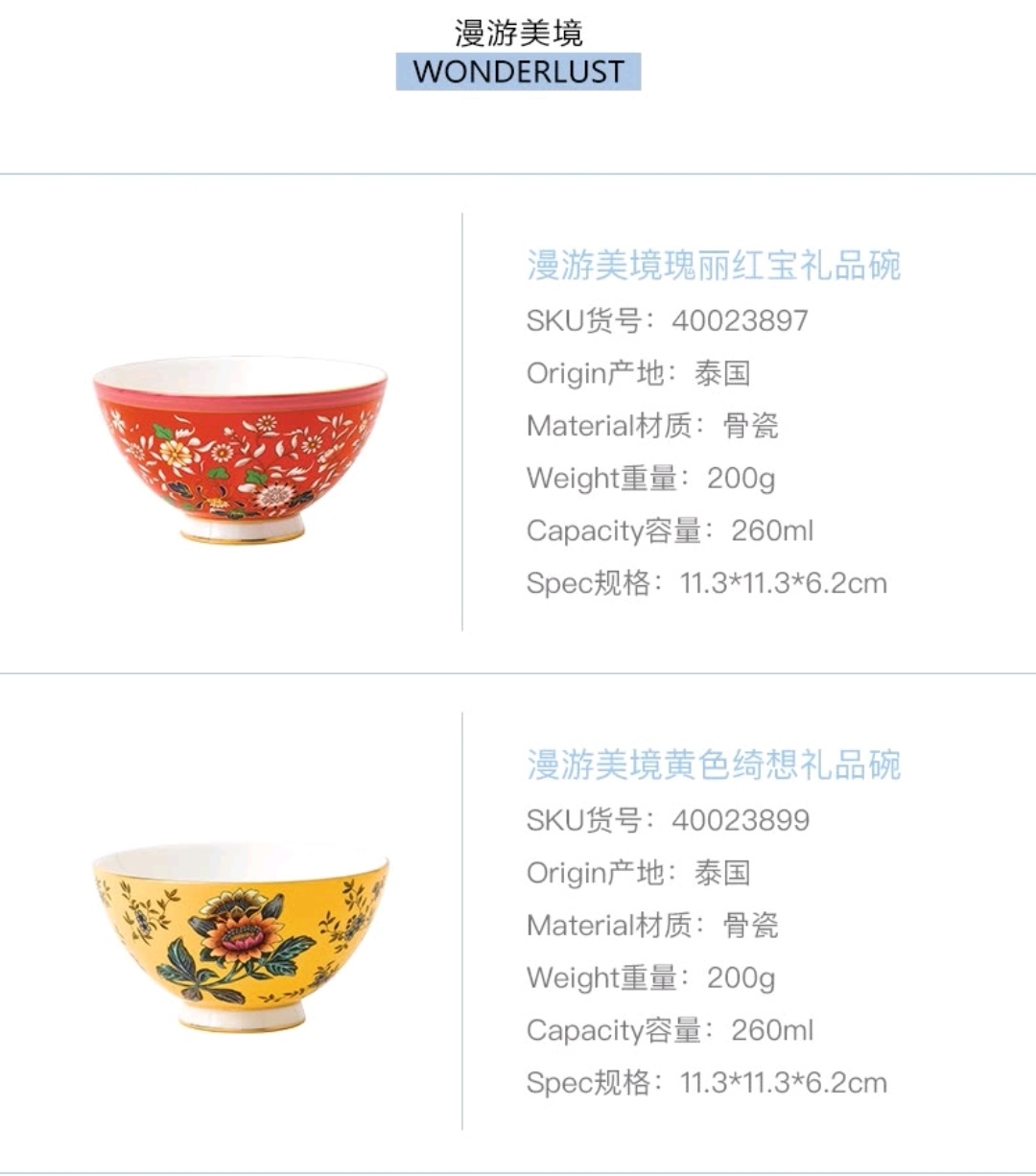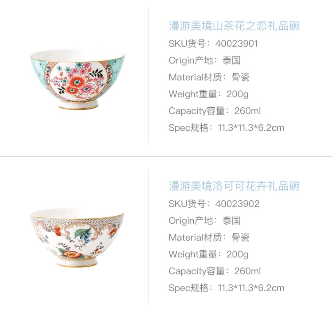 英国威基伍德 WEDGWOOD 玮致活漫游美境11cm礼品碗 骨瓷饭碗欧式餐碗瓷碗礼盒