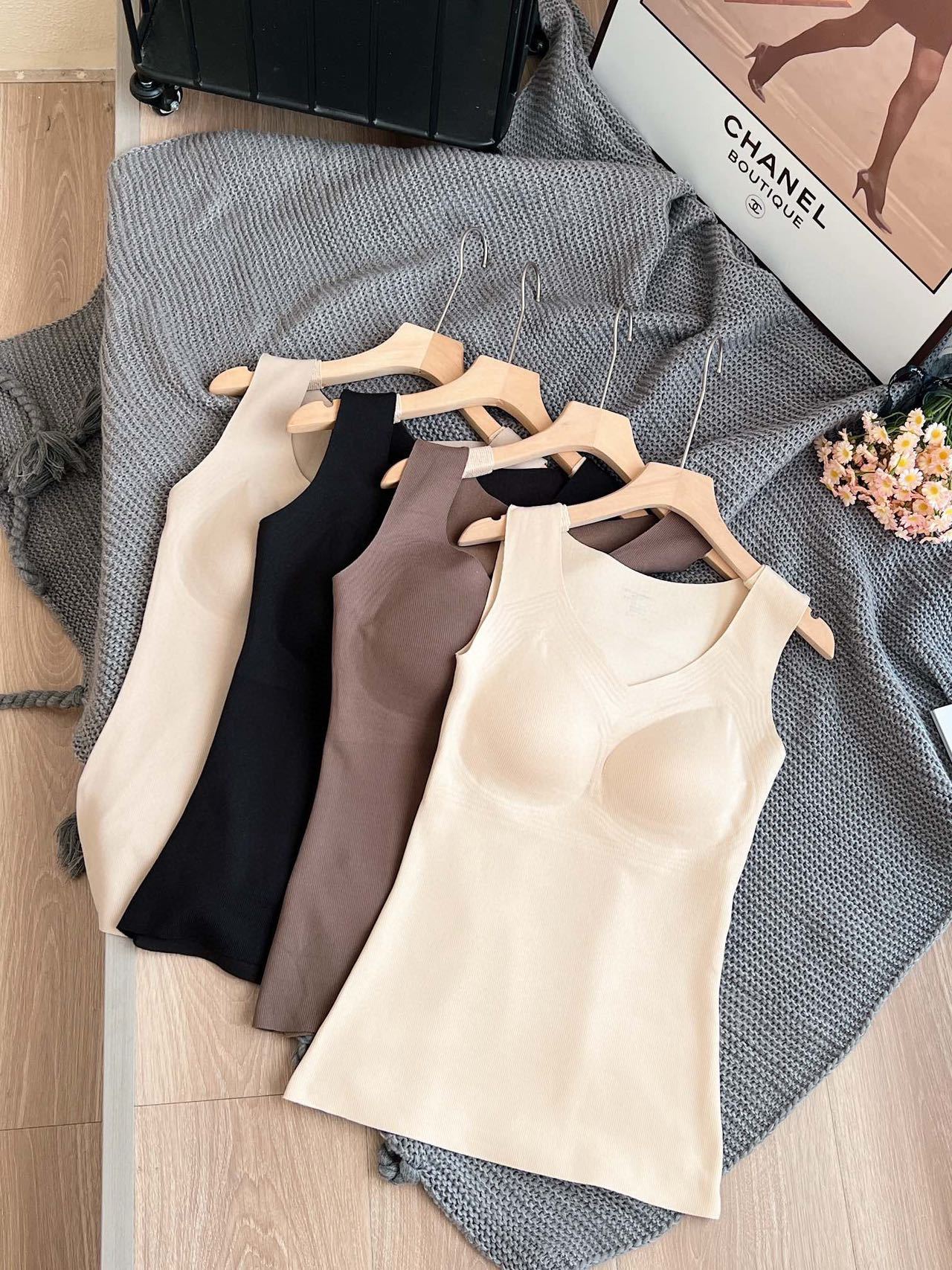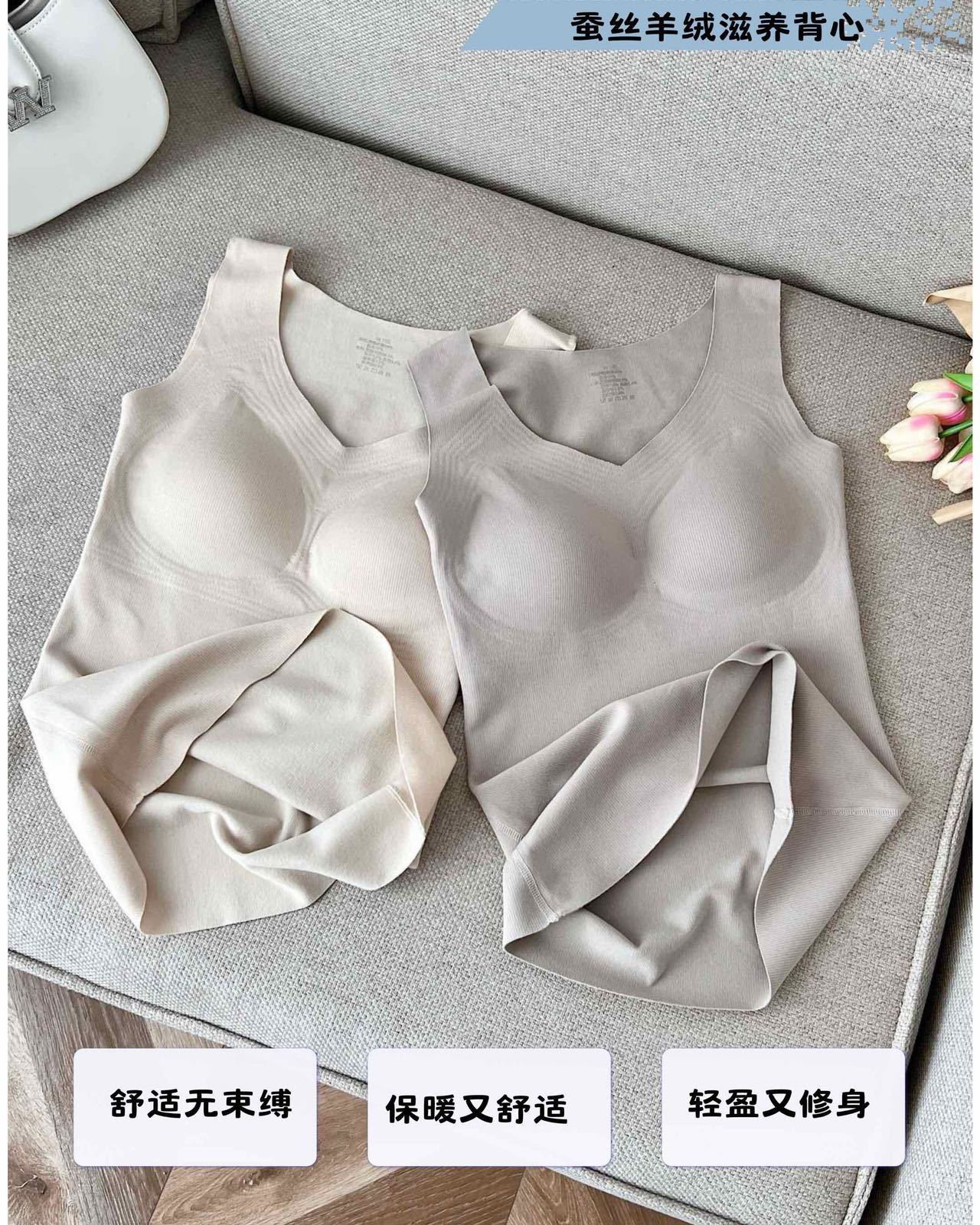 德绒保暖背心女士加绒无痕带胸垫一体式内衣秋冬内搭吊带打底上衣