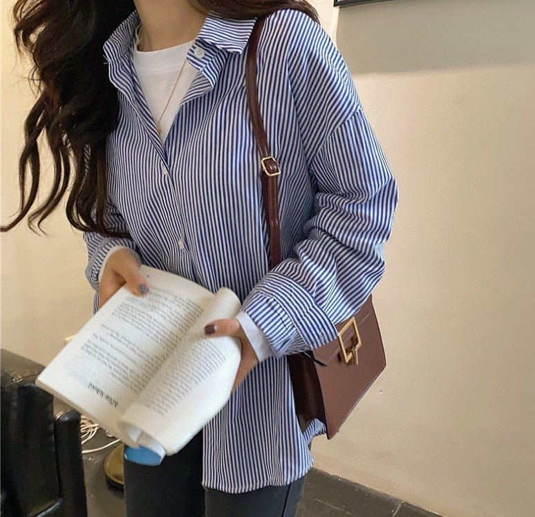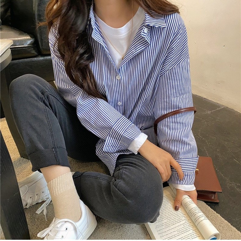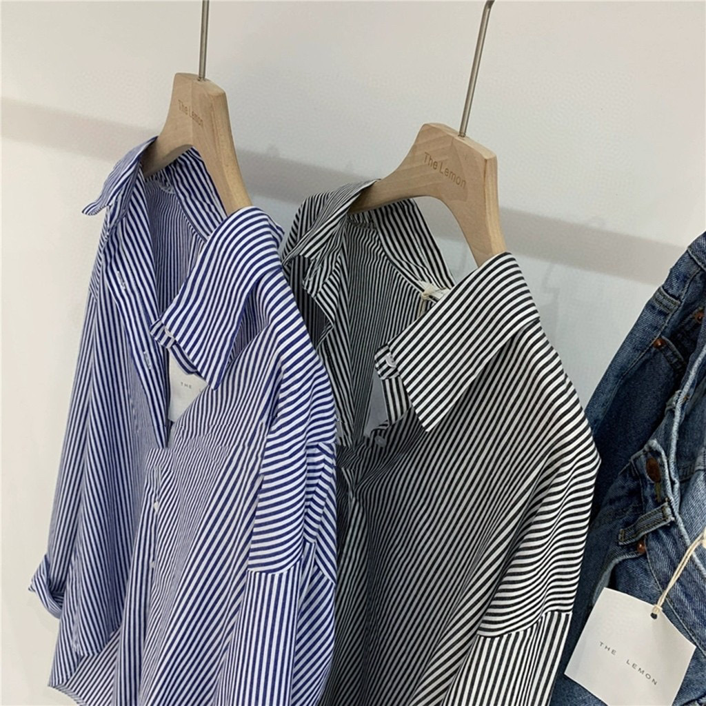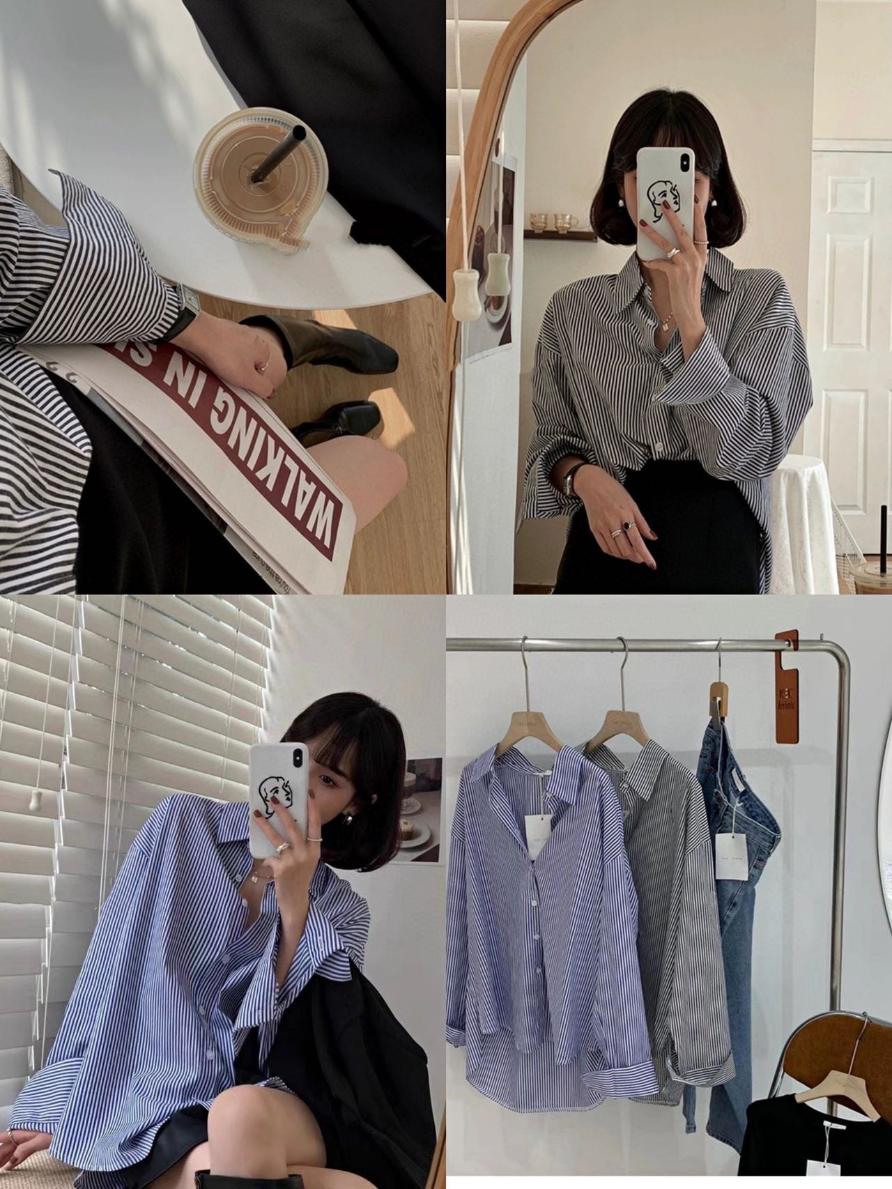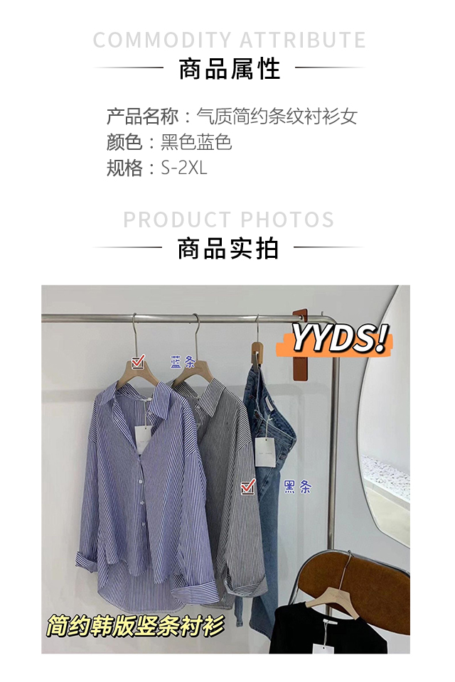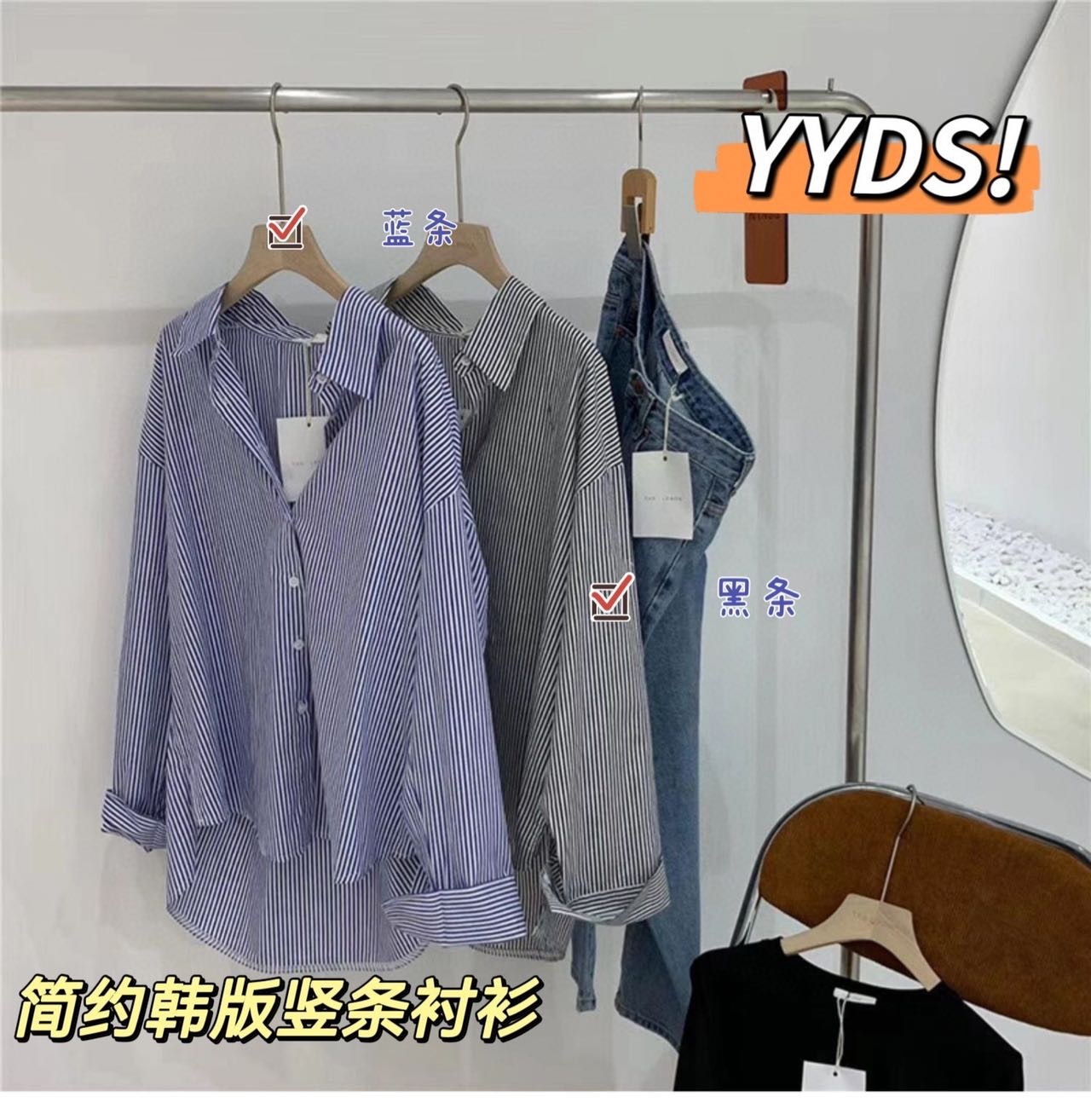 帅的炸街💥 简约韩版竖条衬衫长袖衬衫️