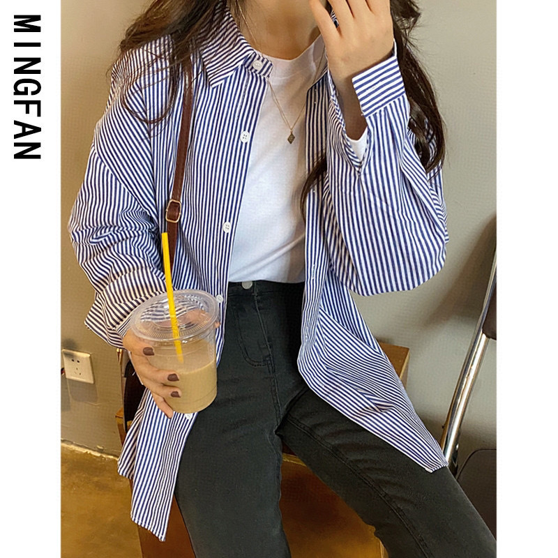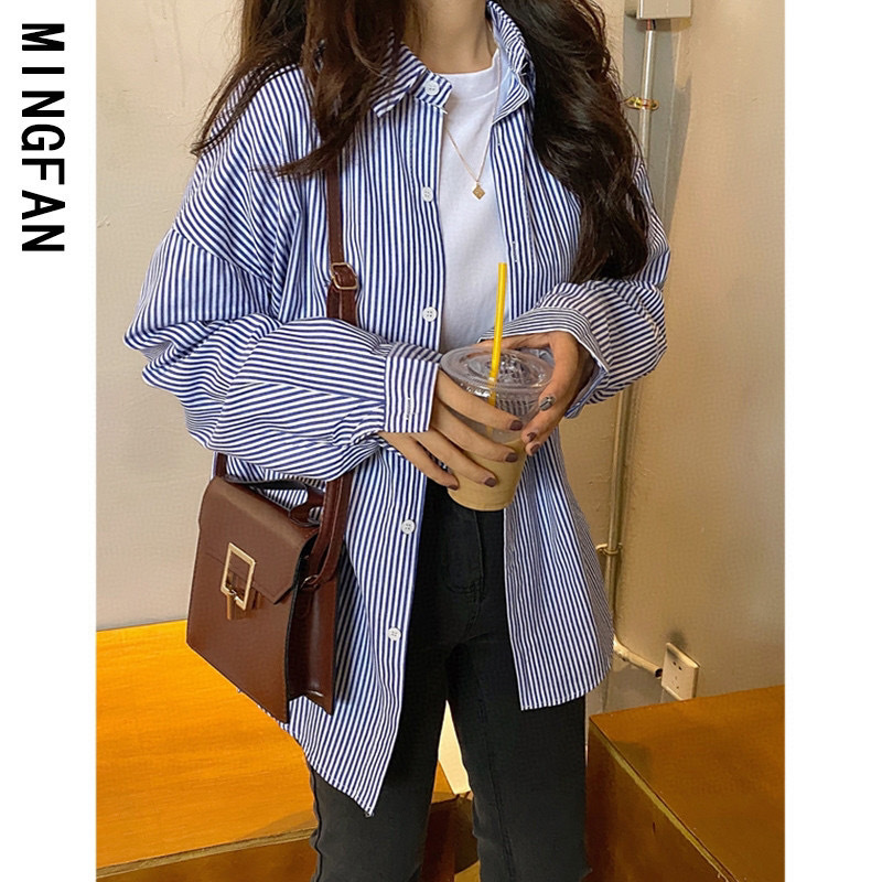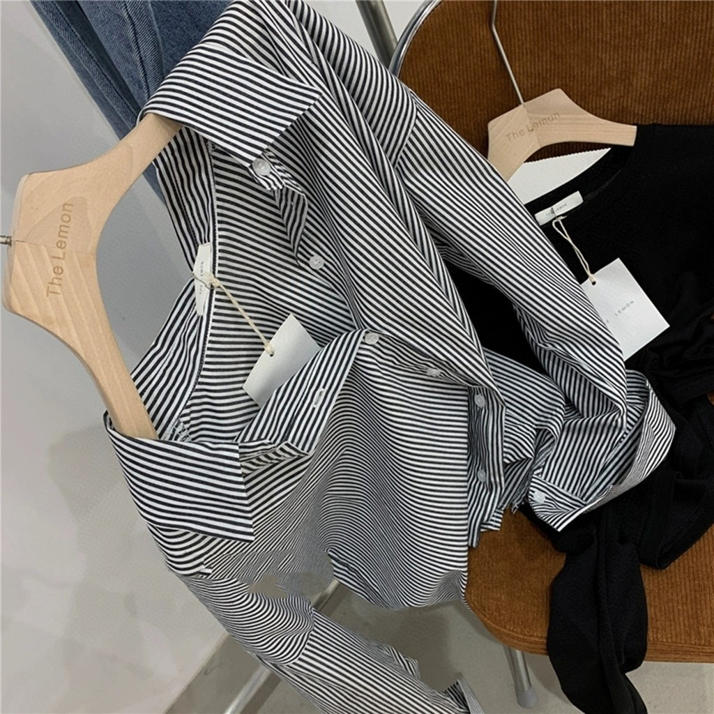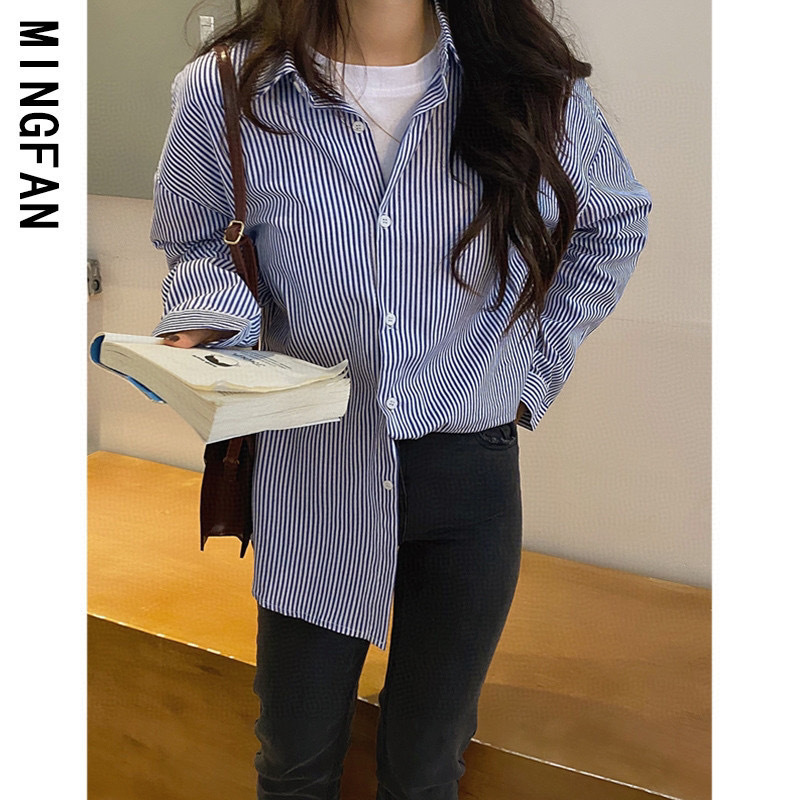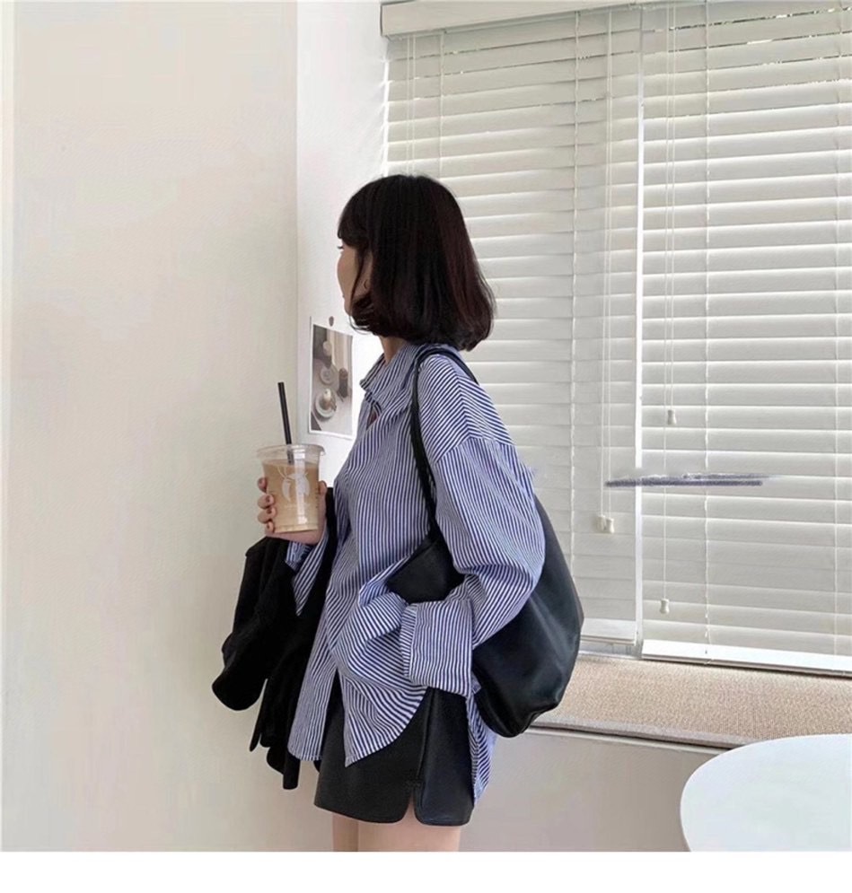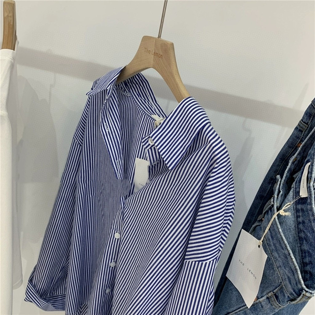 帅的炸街💥 简约韩版竖条衬衫长袖衬衫️