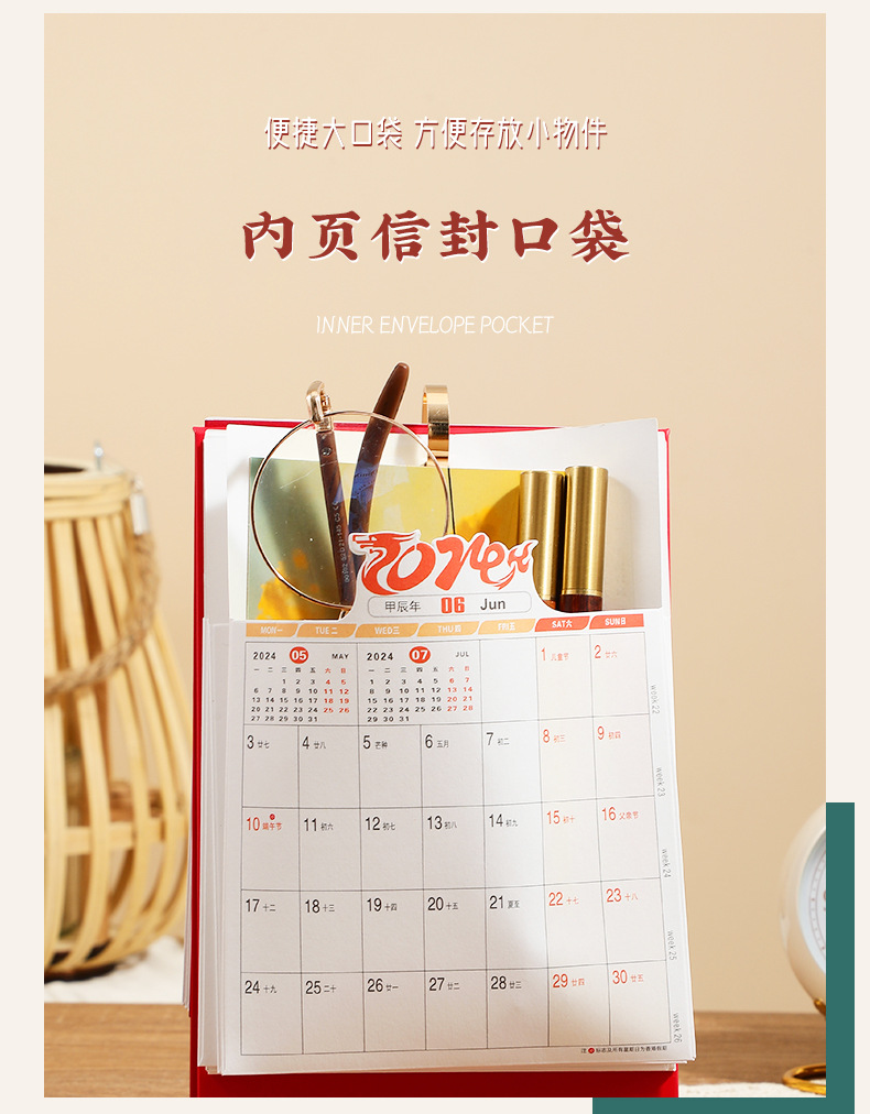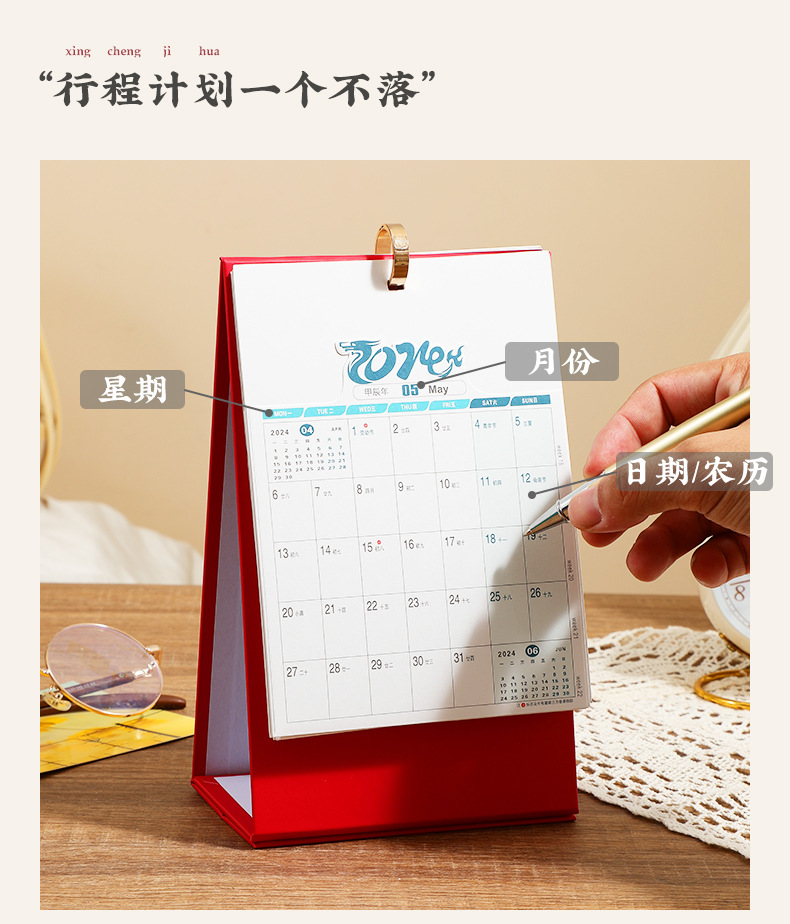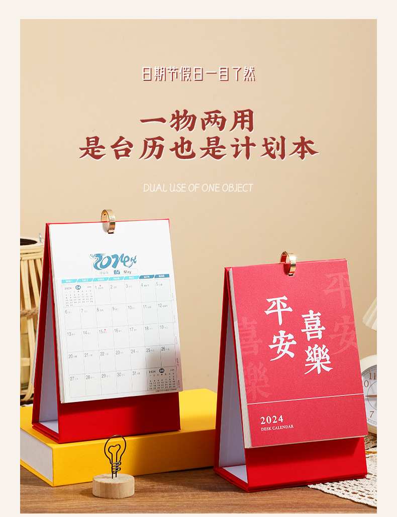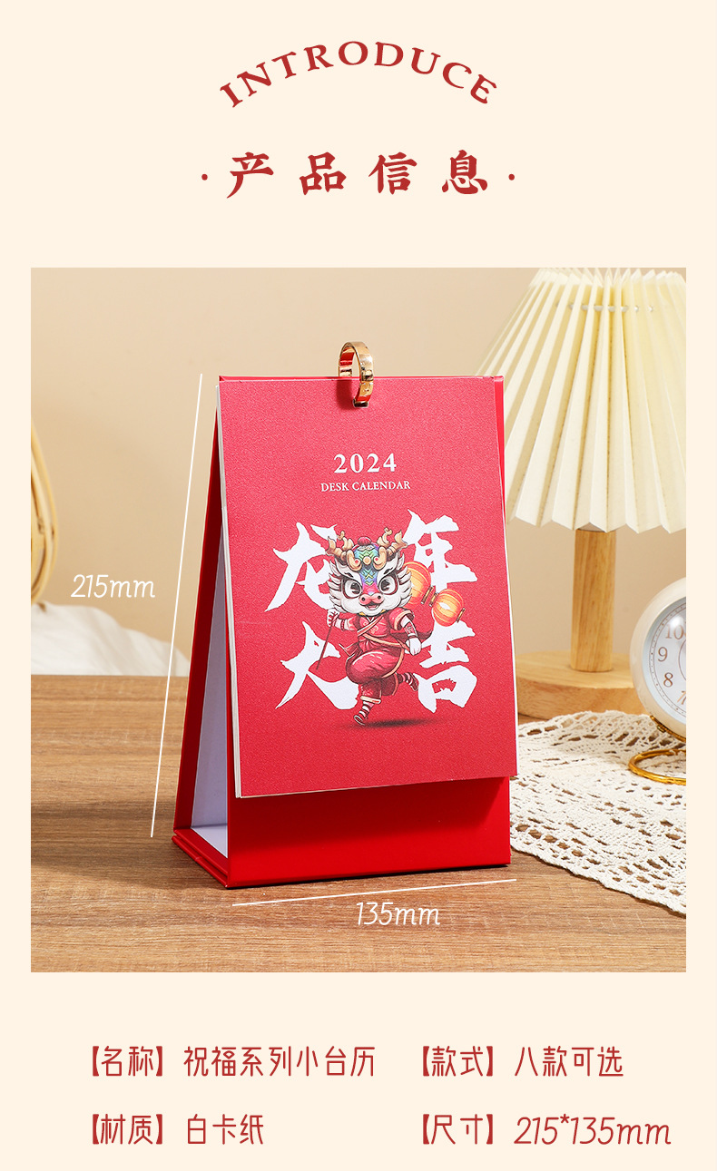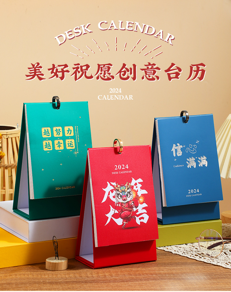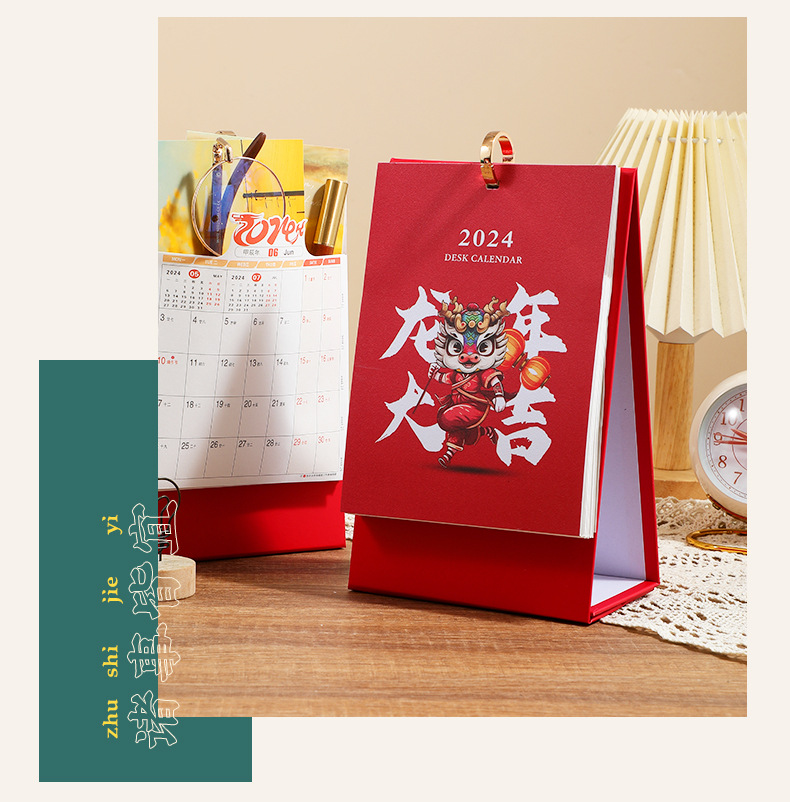 「数款可选!龙年限定款」2024年龙年台历桌面年历日历创意国潮简约企业办公台历家居饰品