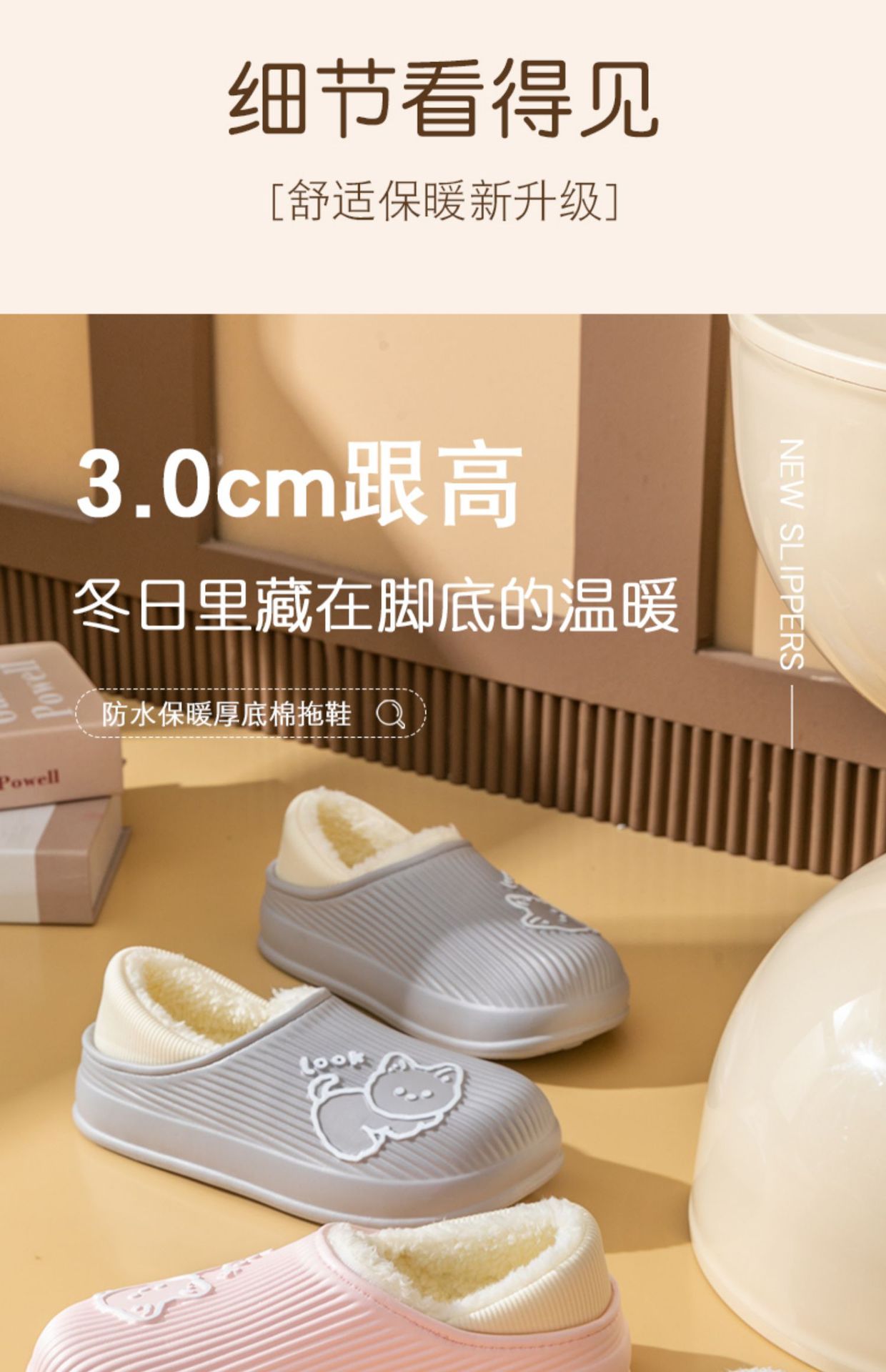 「五色可选!包跟款」可爱防水棉拖鞋女2023冬季新款室内居家款情侣包跟保暖防滑棉鞋男