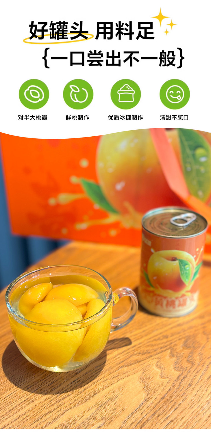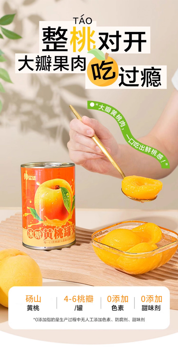 【产品规格】安徽 冰糖黄桃罐头(每箱都是独立的包装,如购买多件分多个包裹发出,可能会前后陆续到货)。